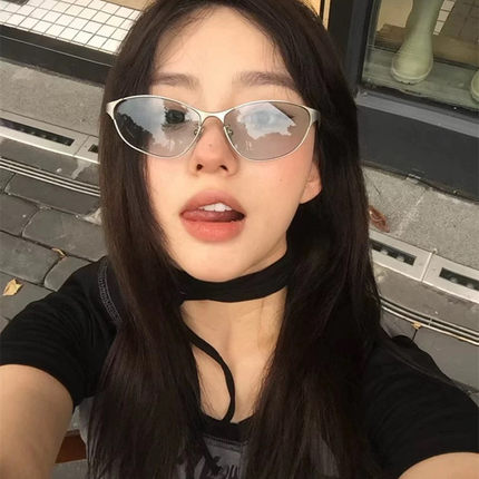 骑行欧美风Y2K辣妹金属蓝色街拍墨镜女高级感凹造型个性太阳眼镜