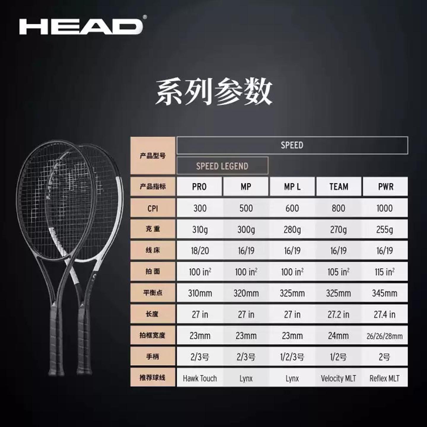 HEAD海德L5网球拍SPEED小德黑拍PRO法网夺冠专业网拍MP石墨烯科技