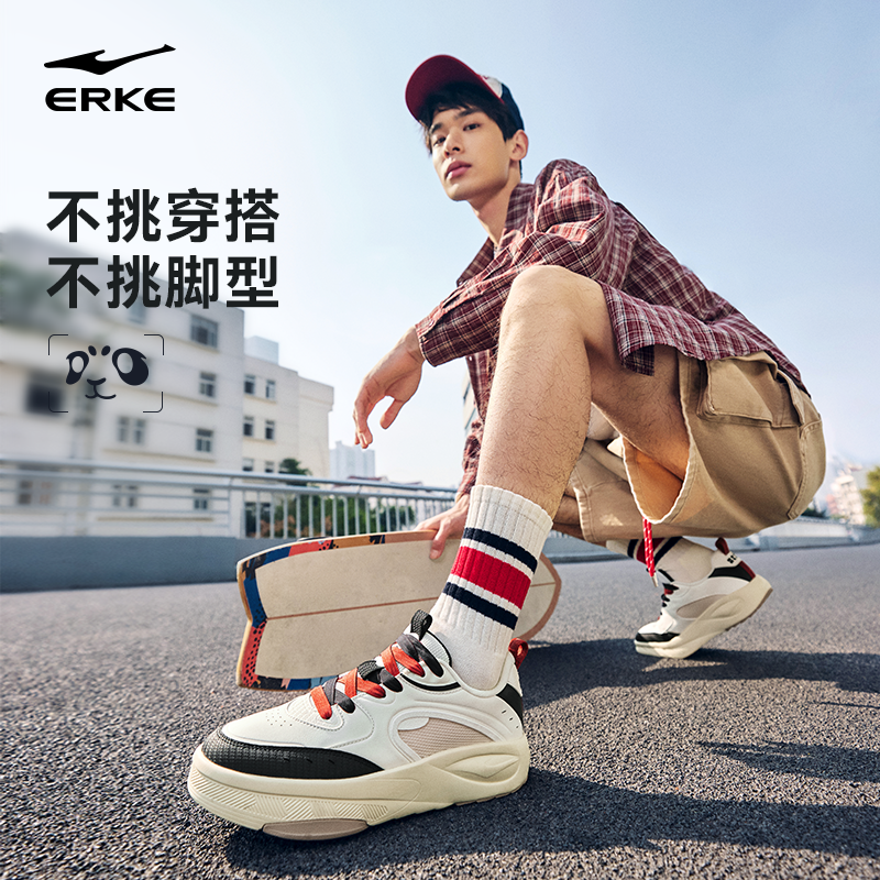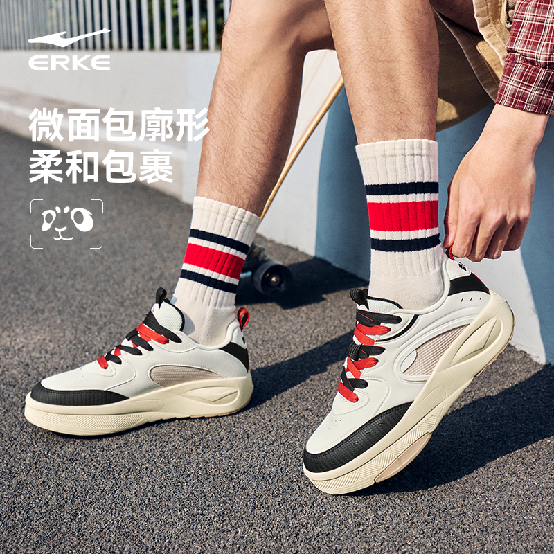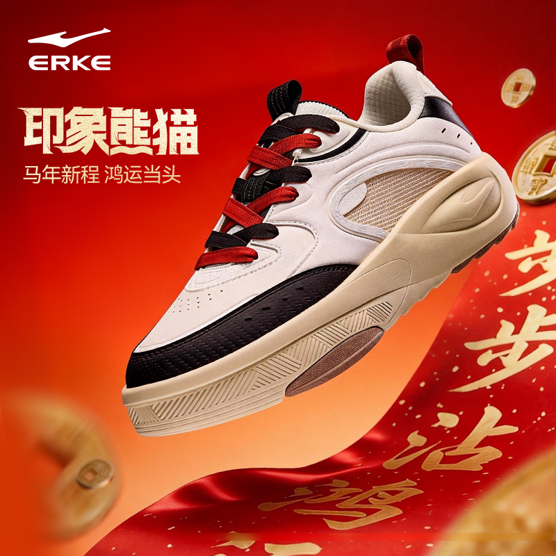 印象熊猫6鸿星尔克男鞋2026冬季新款皮面低帮学生复古休闲运动鞋