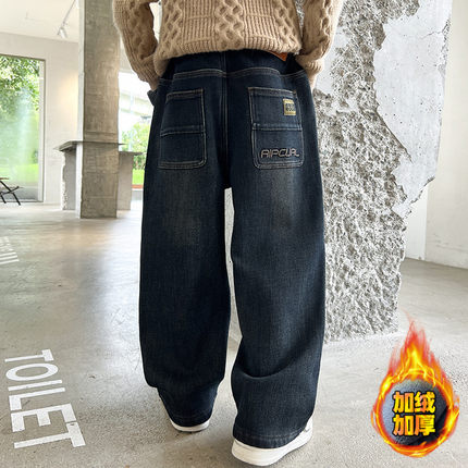 男童加绒牛仔裤秋冬装2025新款加厚中大儿童冬季一体绒休闲裤子潮