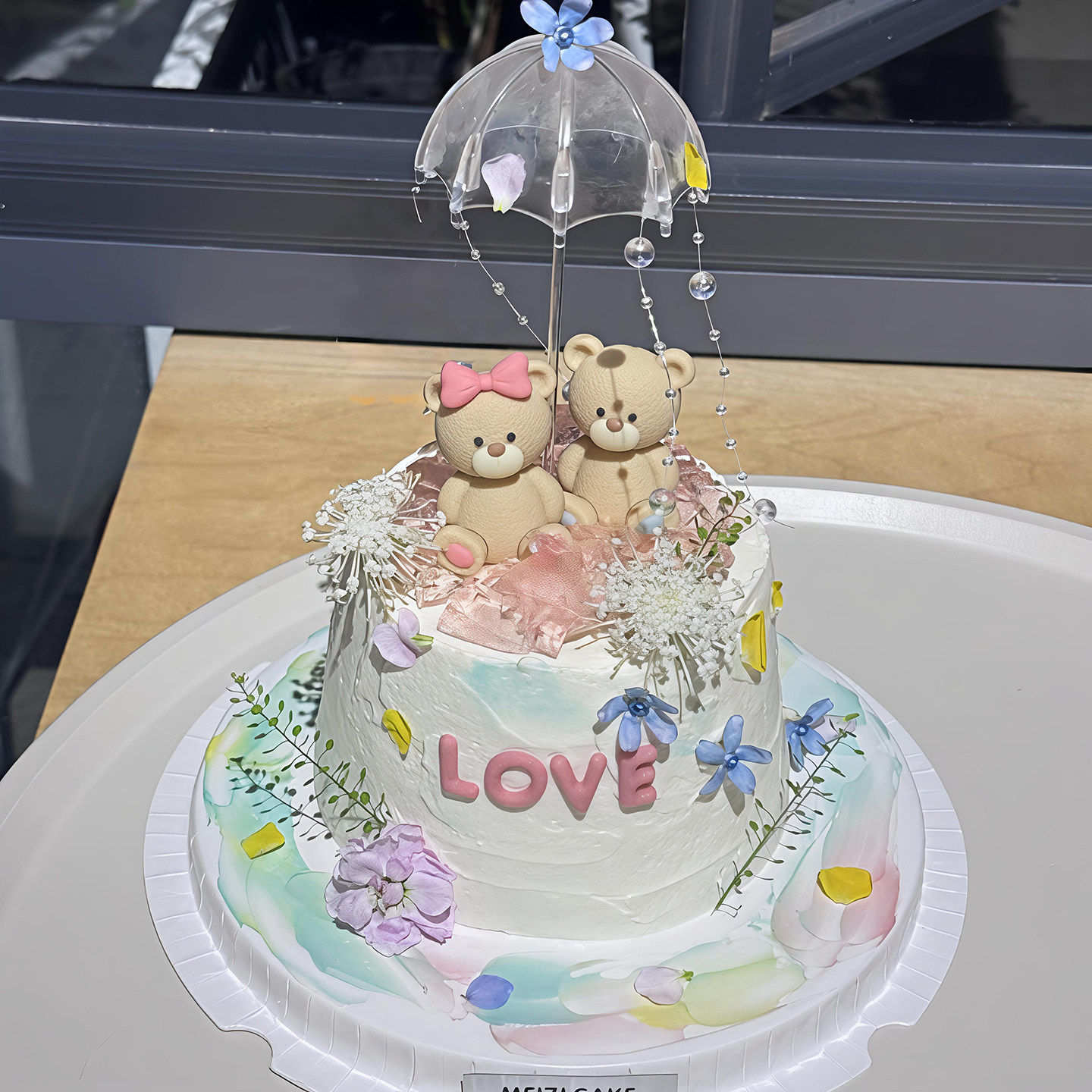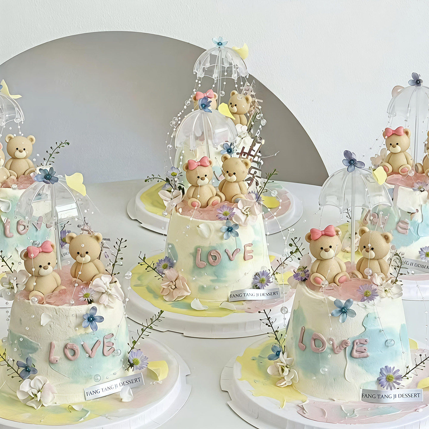 包邮网红2.14情人节蛋糕装饰摆件唯美软胶蝴蝶结小熊雨伞love插件