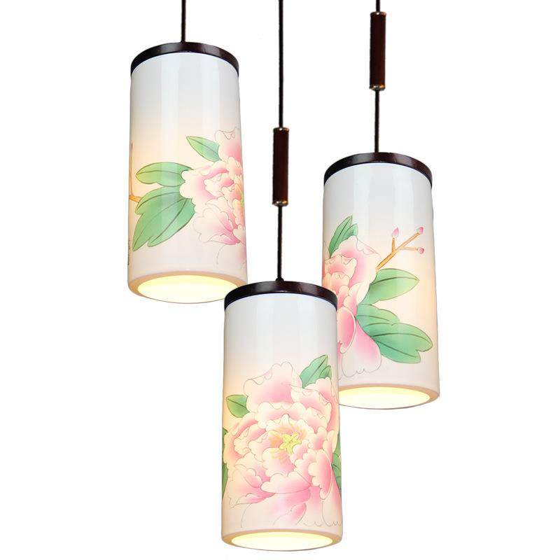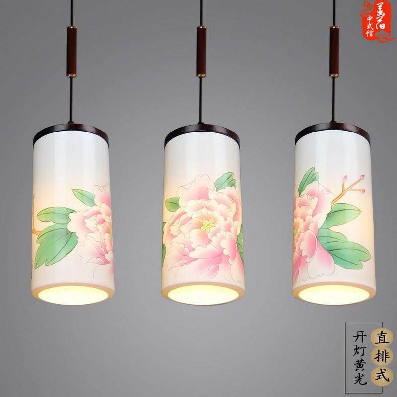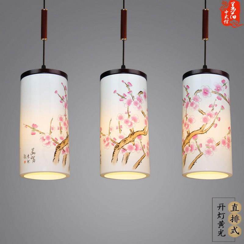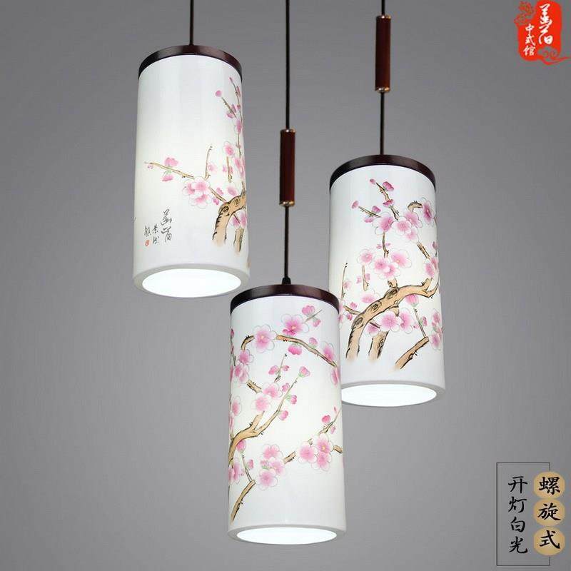 现代中式餐厅三头吊灯温馨卧室灯手绘梅花陶瓷灯仿古茶室书房吊灯