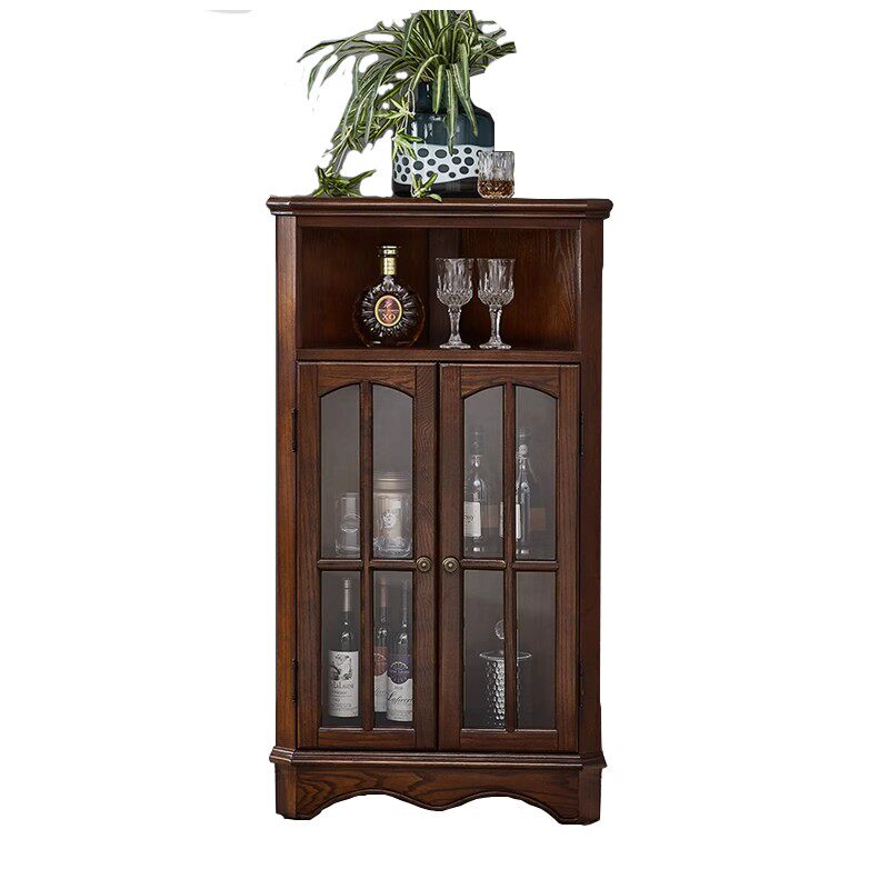 美式实木角落柜角橱扇形小角柜玻璃柜储物柜小酒柜墙角柜三角形