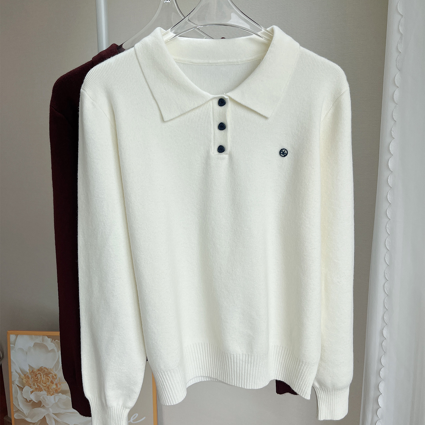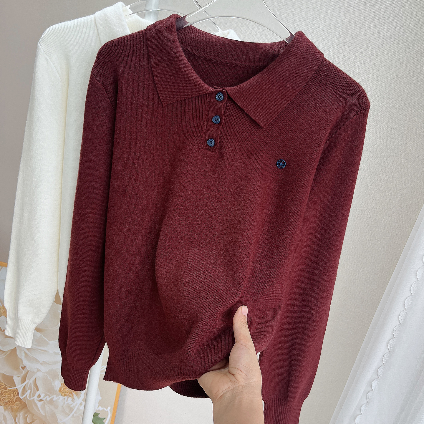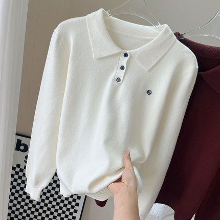 翻领套头长袖T恤针织衫女毛衣