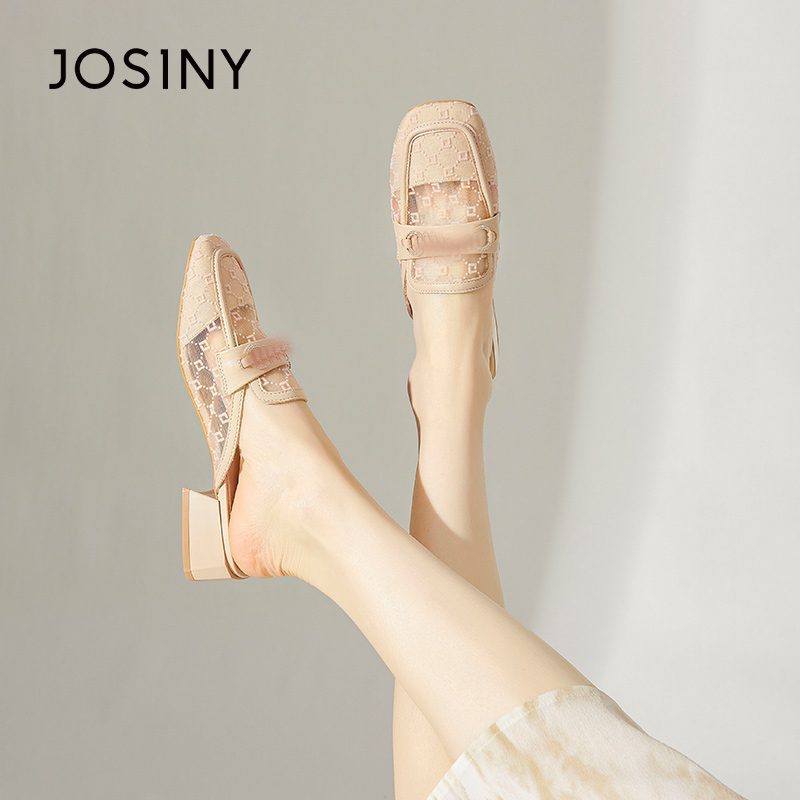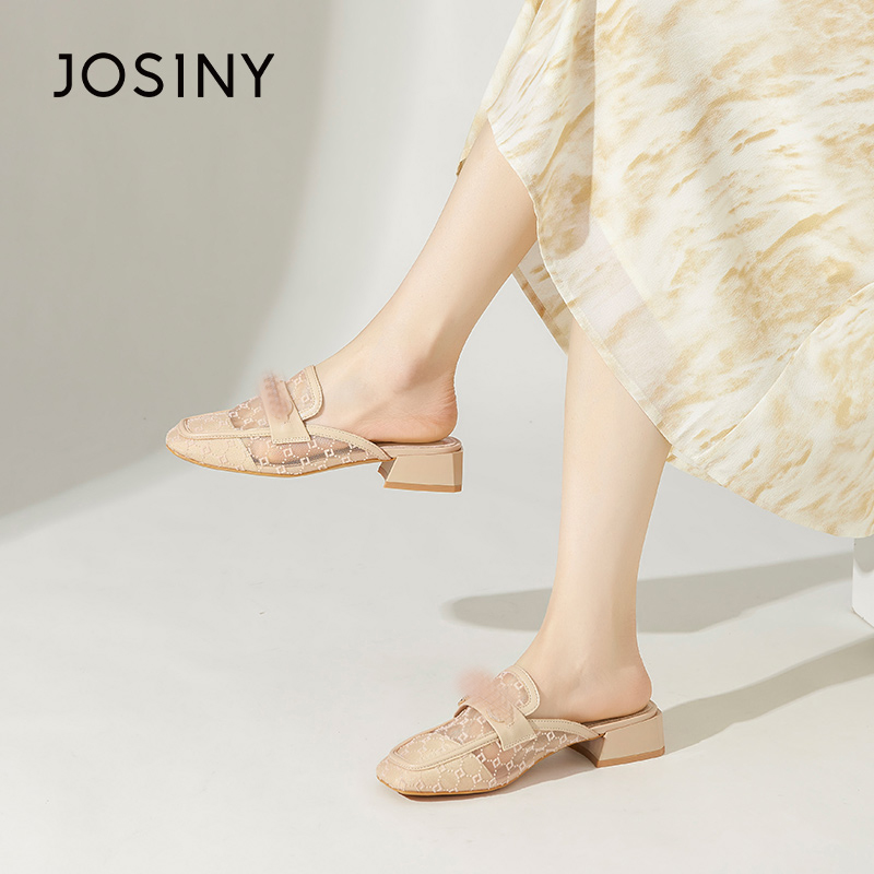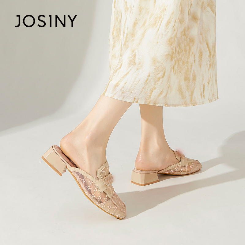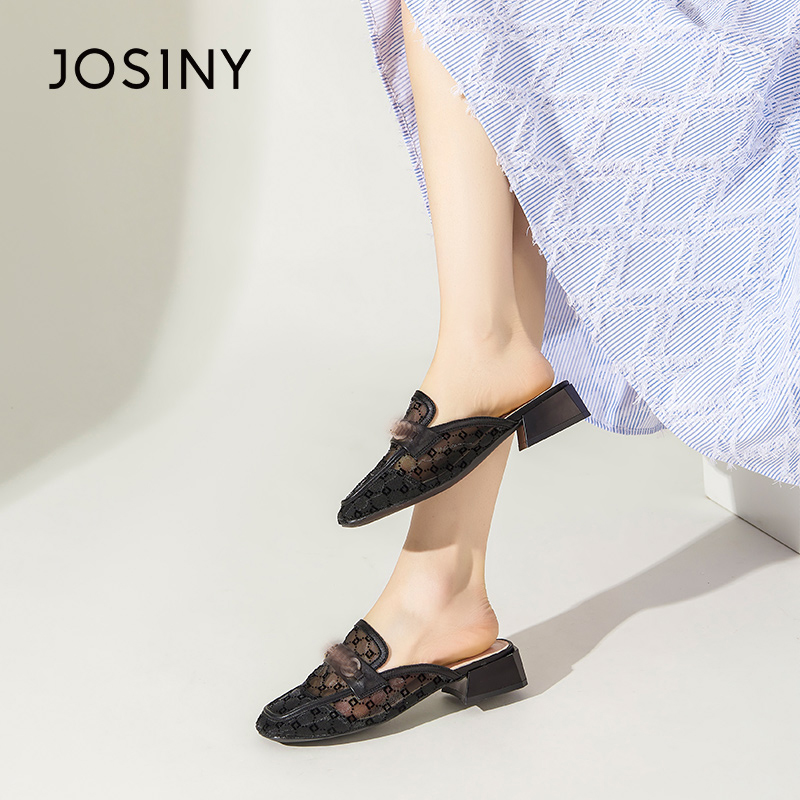 卓诗尼粗跟包头半拖穆勒拖女鞋