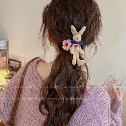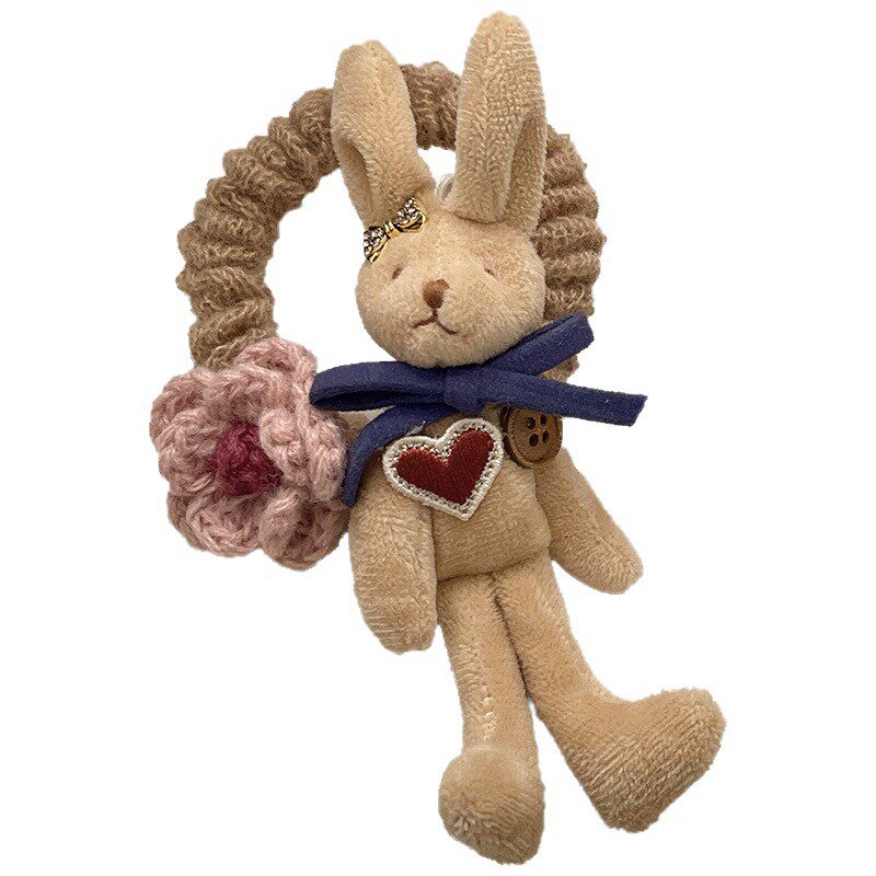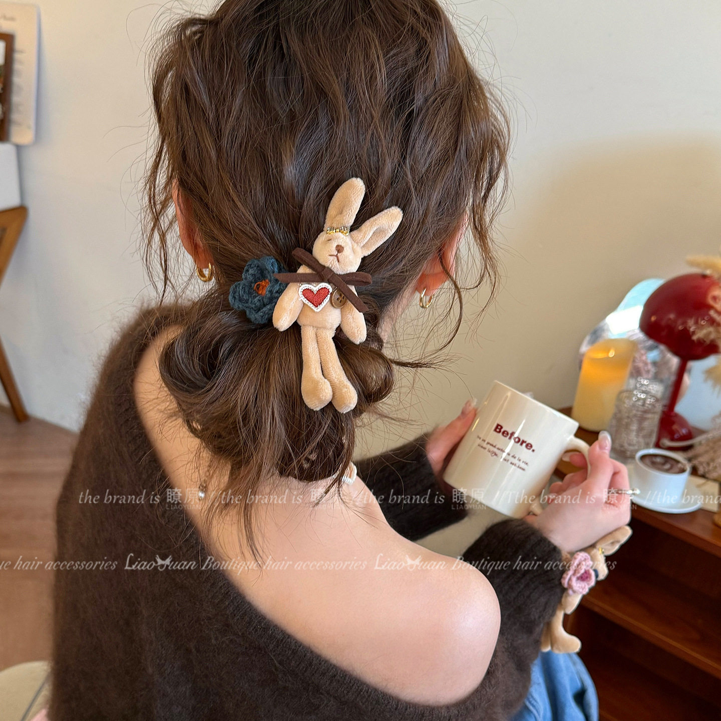 韩国新款复古森系手工花朵英伦兔子发圈少女心卡通皮筋头饰扎发绳