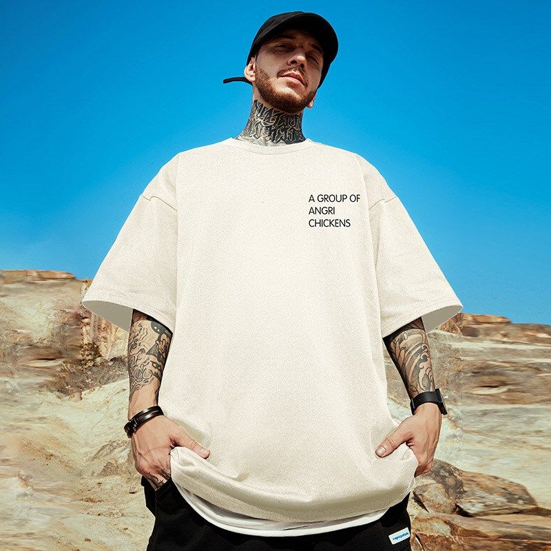 300g重磅潮牌白色短袖宽松胖子T恤五分袖纯棉情侣加肥加大码男装