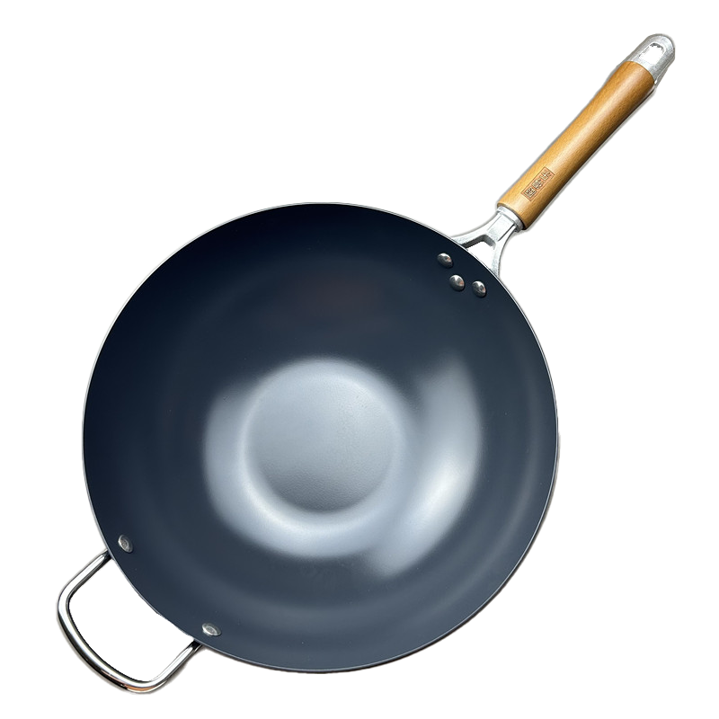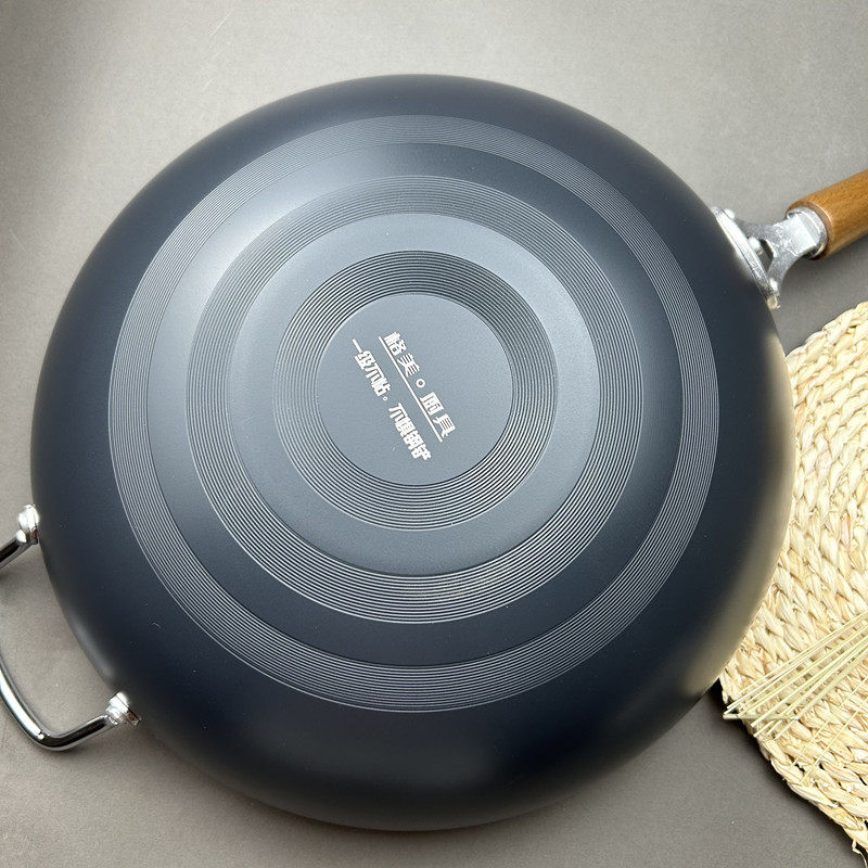 厨得乐黑金钢不粘锅家用无涂层铁锅平底炒锅双耳炒菜锅燃气灶适用