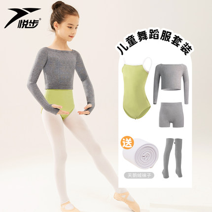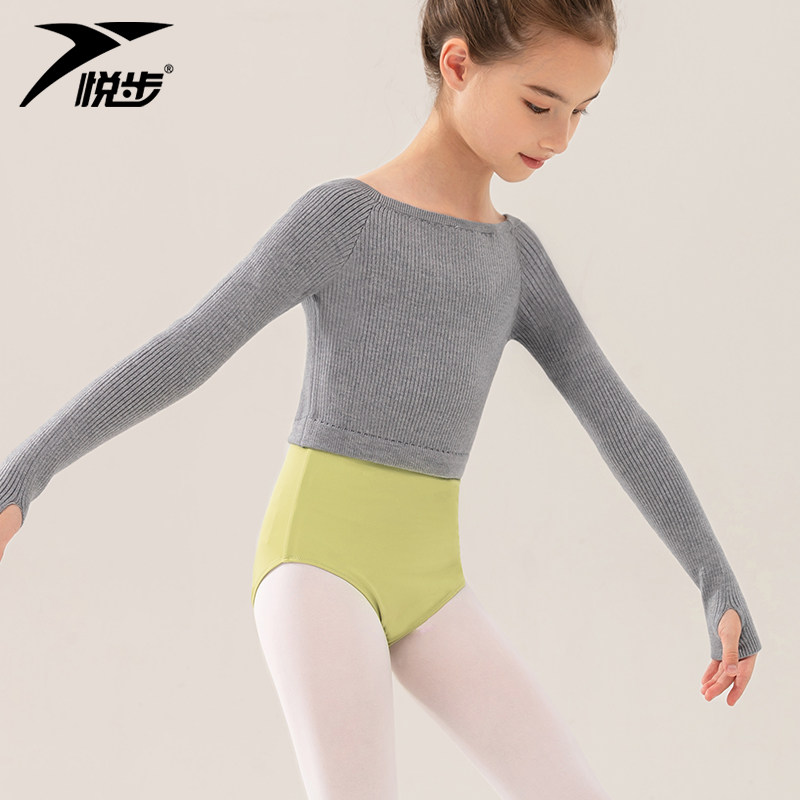 儿童舞蹈服一字领毛衣外套女童秋冬保暖长袖上衣小披肩体操服套装