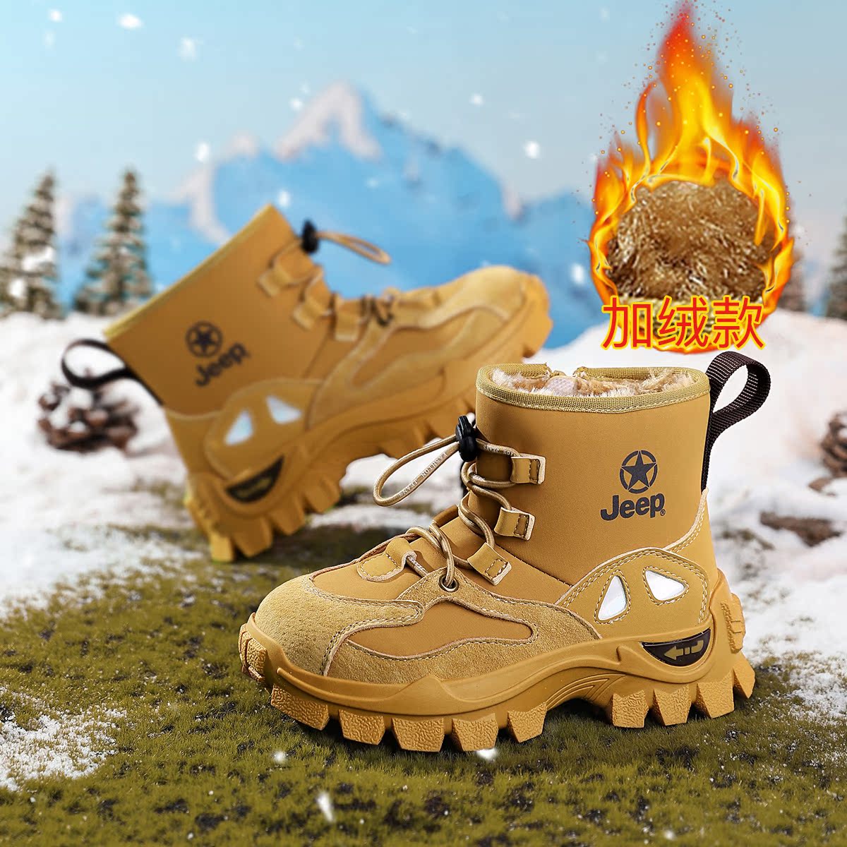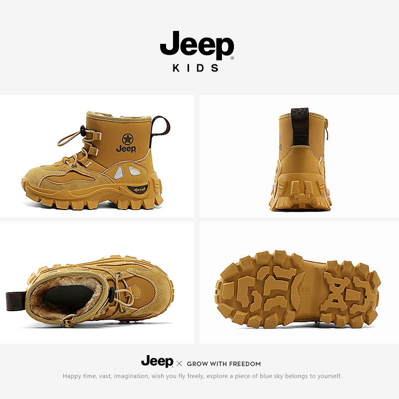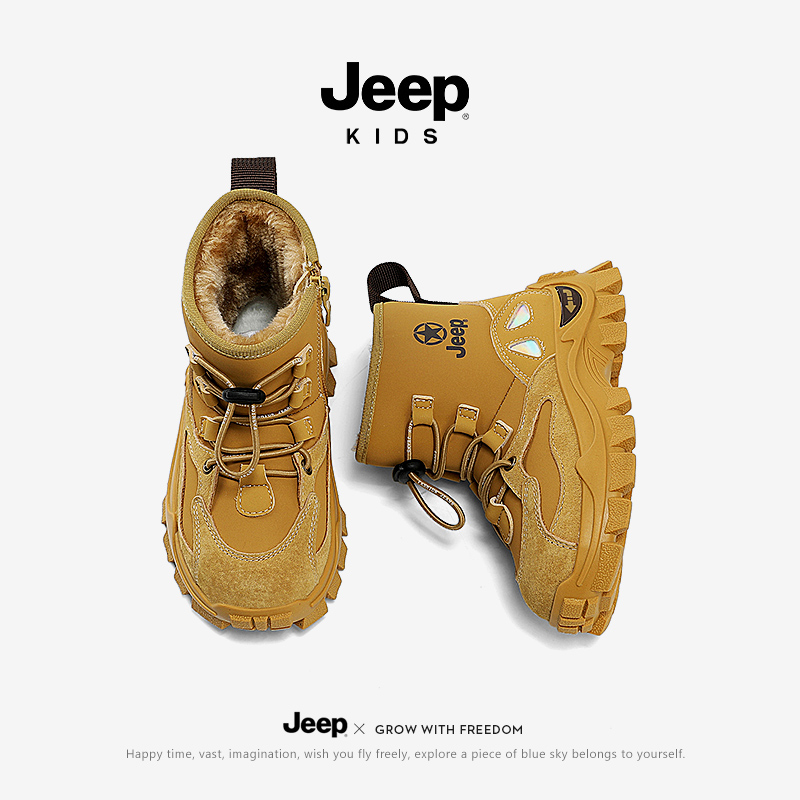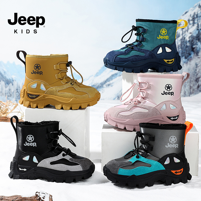 JEEP儿童雪地靴加绒加厚防寒保暖2025新款冬季防滑男童女童大棉鞋