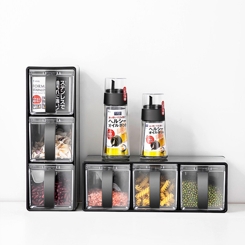 日本ASVEL盐味精调料盒组合套装 厨房不锈钢调味盒瓶罐一体多格