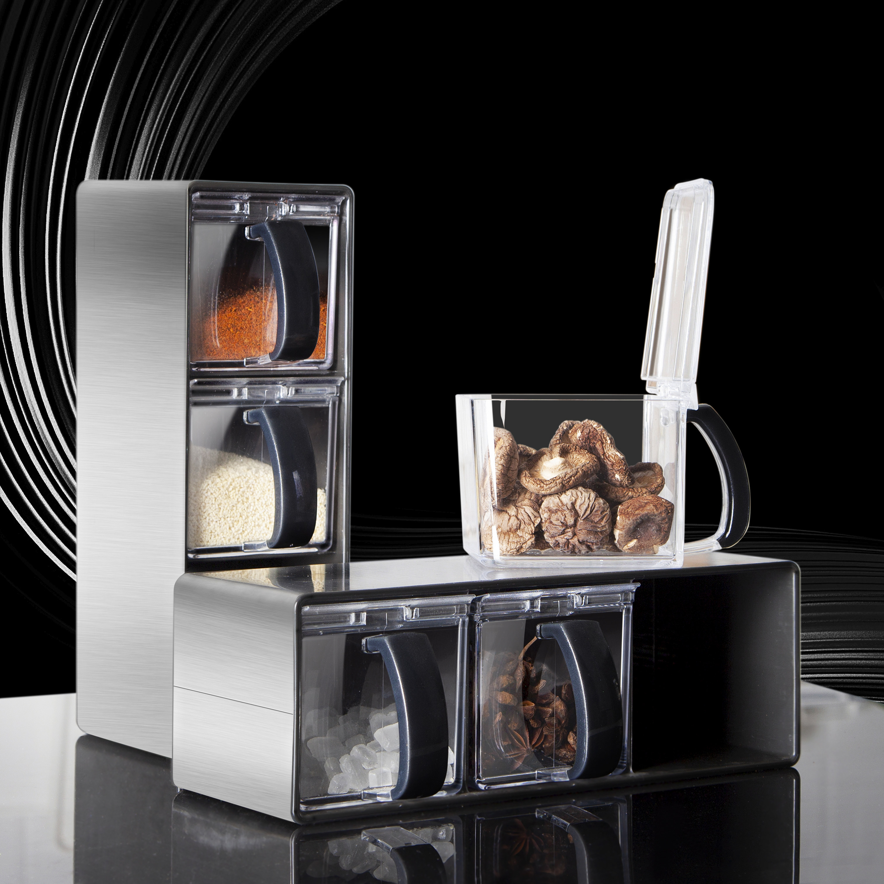 asvel厨房不锈钢一体多格调味盒
