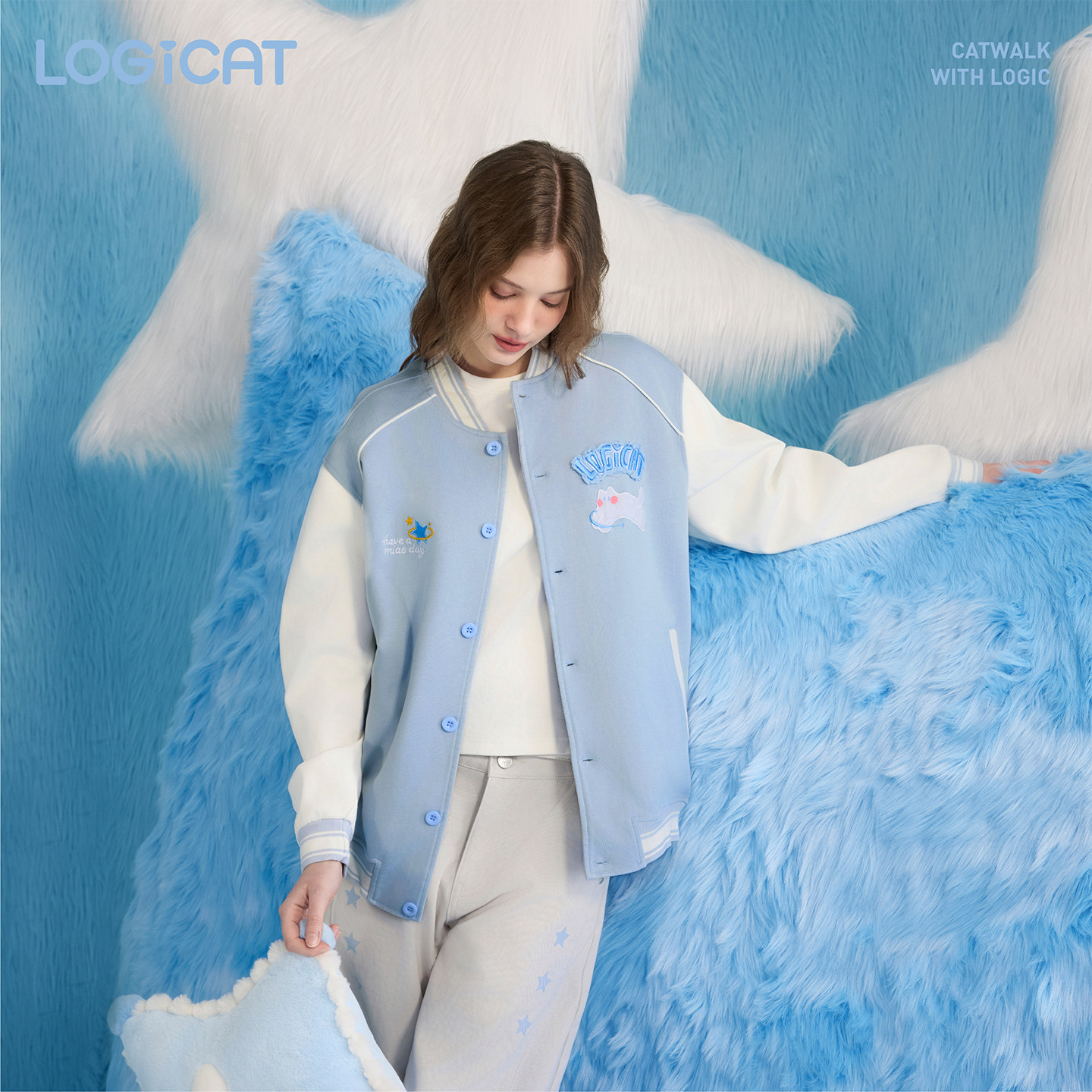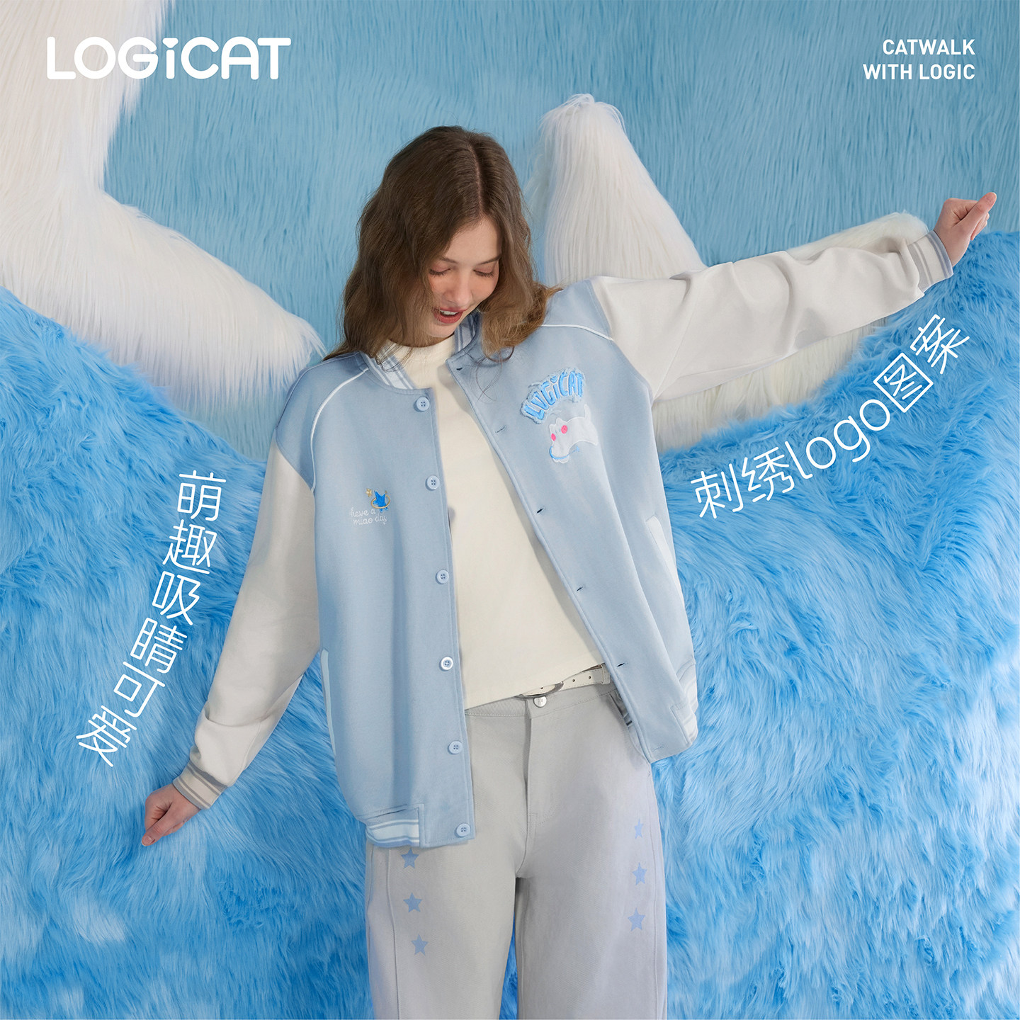 LOGICAT棒球服宽松百搭时尚美式潮流男女情侣装刺绣针织上衣外套