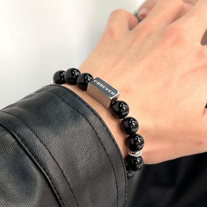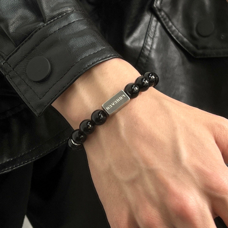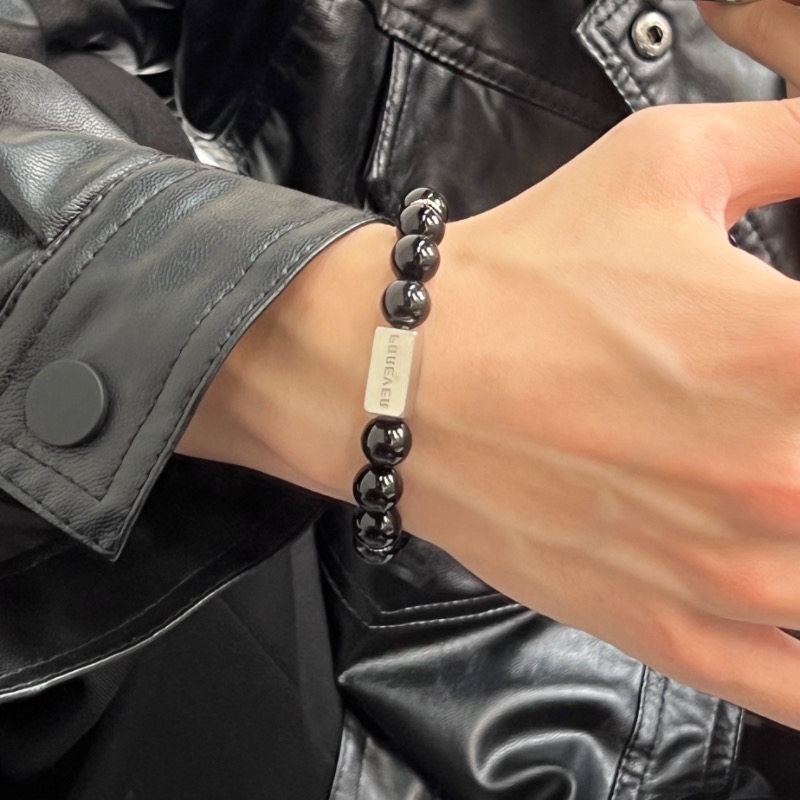 复古串珠手链男女潮牌ins嘻哈小众设计高级感情侣手饰个性钛钢配