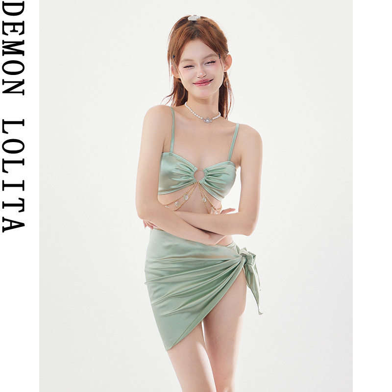 泳衣女2025新款高颜值比基尼三件套风小胸聚拢温泉度假性感泳衣女