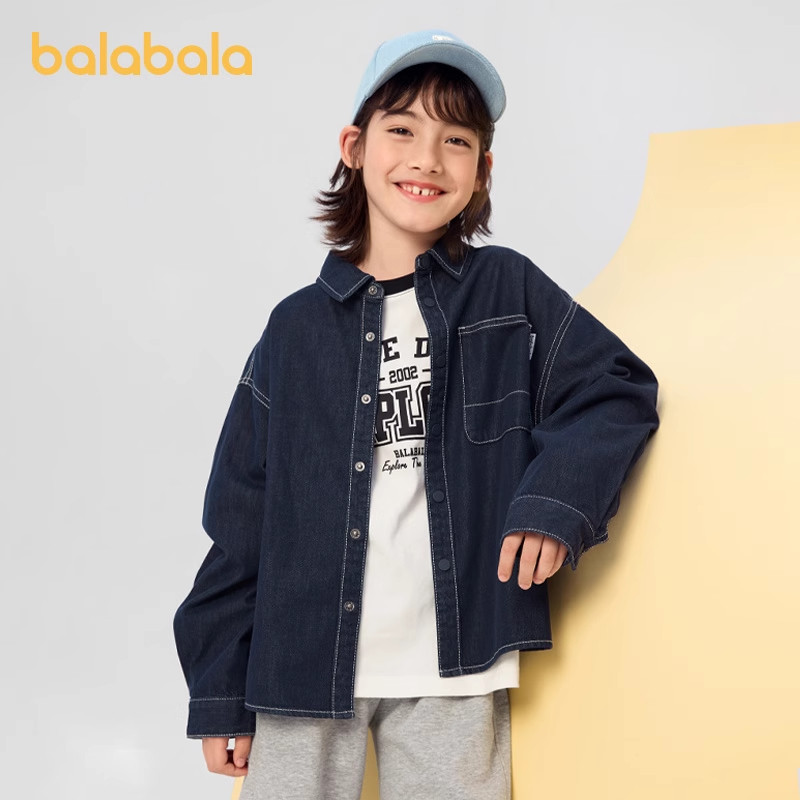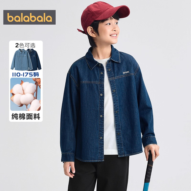 巴拉巴拉儿童衬衫男童衬衣长袖宝宝春秋装牛仔外套中大童