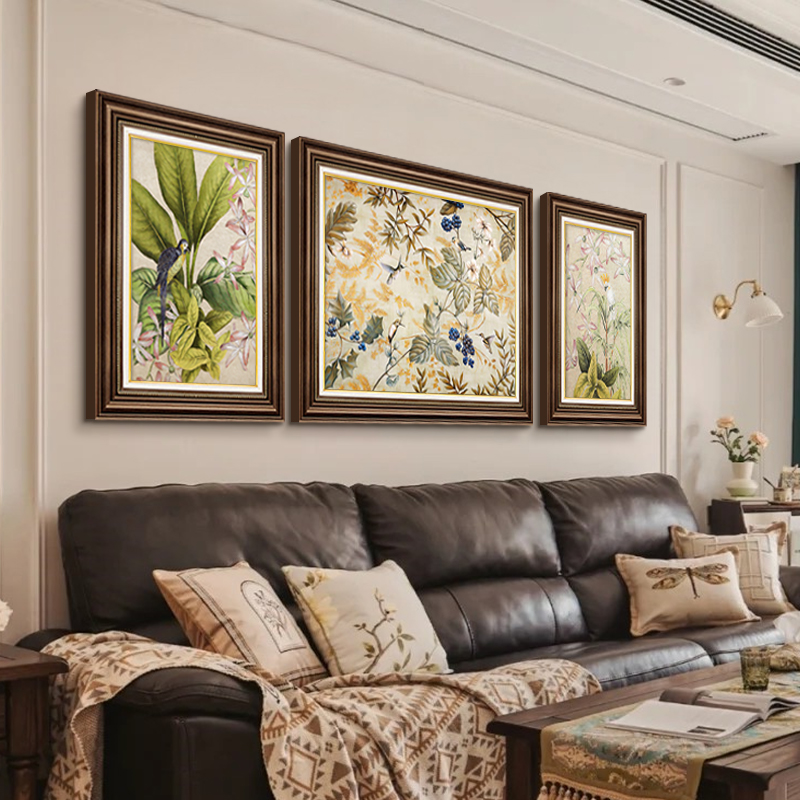 客厅三联沙发背景墙装饰画美式挂画欧式复古油画法式高级感壁画
