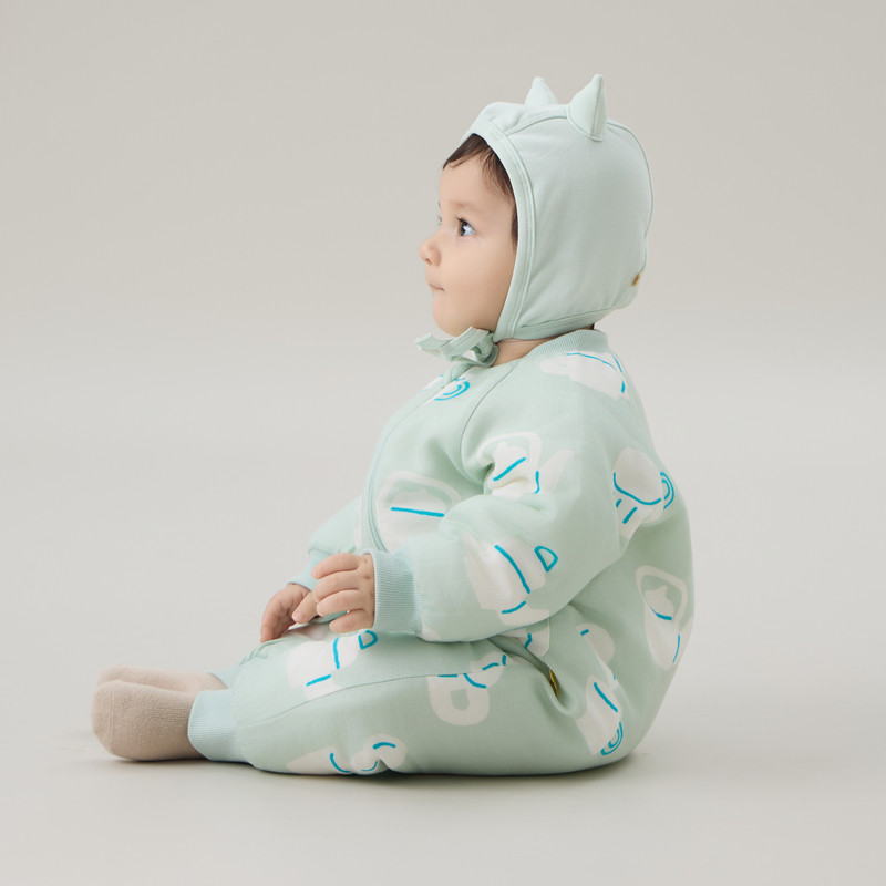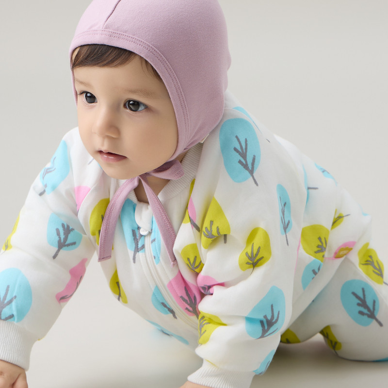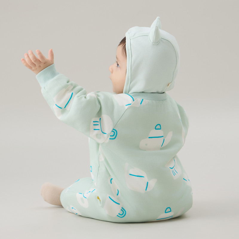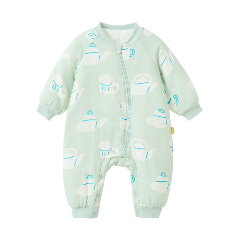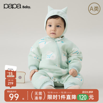 【新品】papa爬爬秋冬季婴儿连体衣男女宝宝印花纱布保暖夹棉爬服