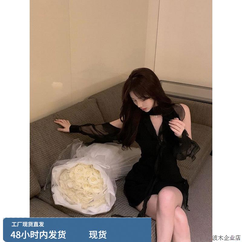 大码300斤胖妹妹法式露肩挂脖连衣裙女秋季高级感宴会礼服包臀裙2