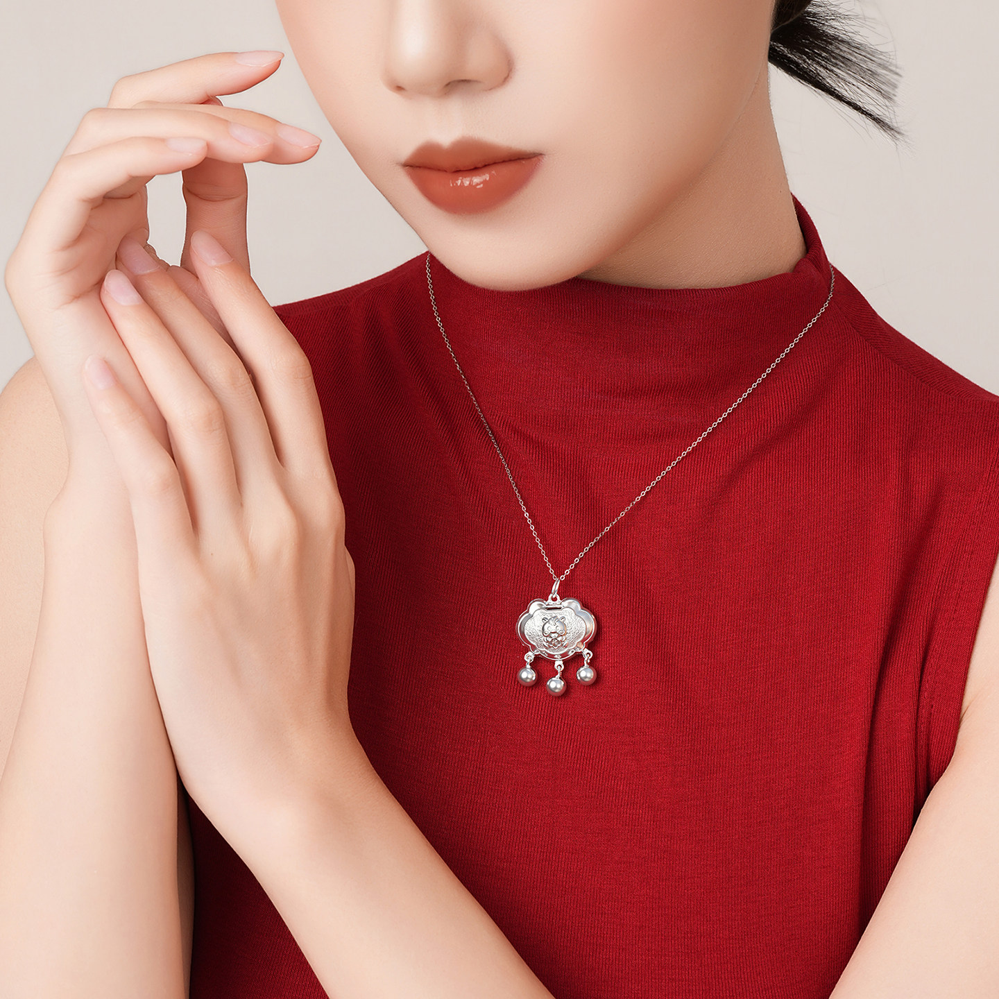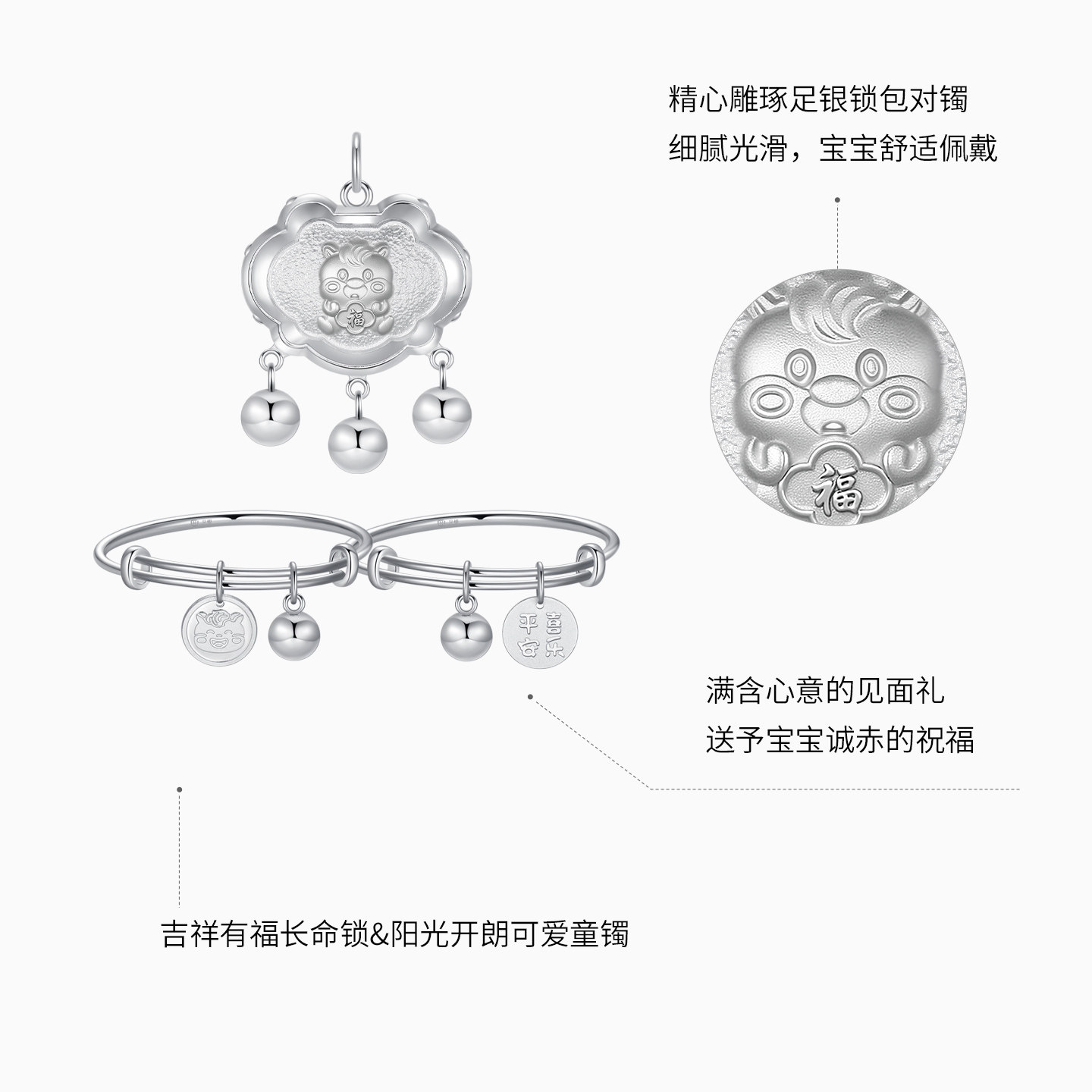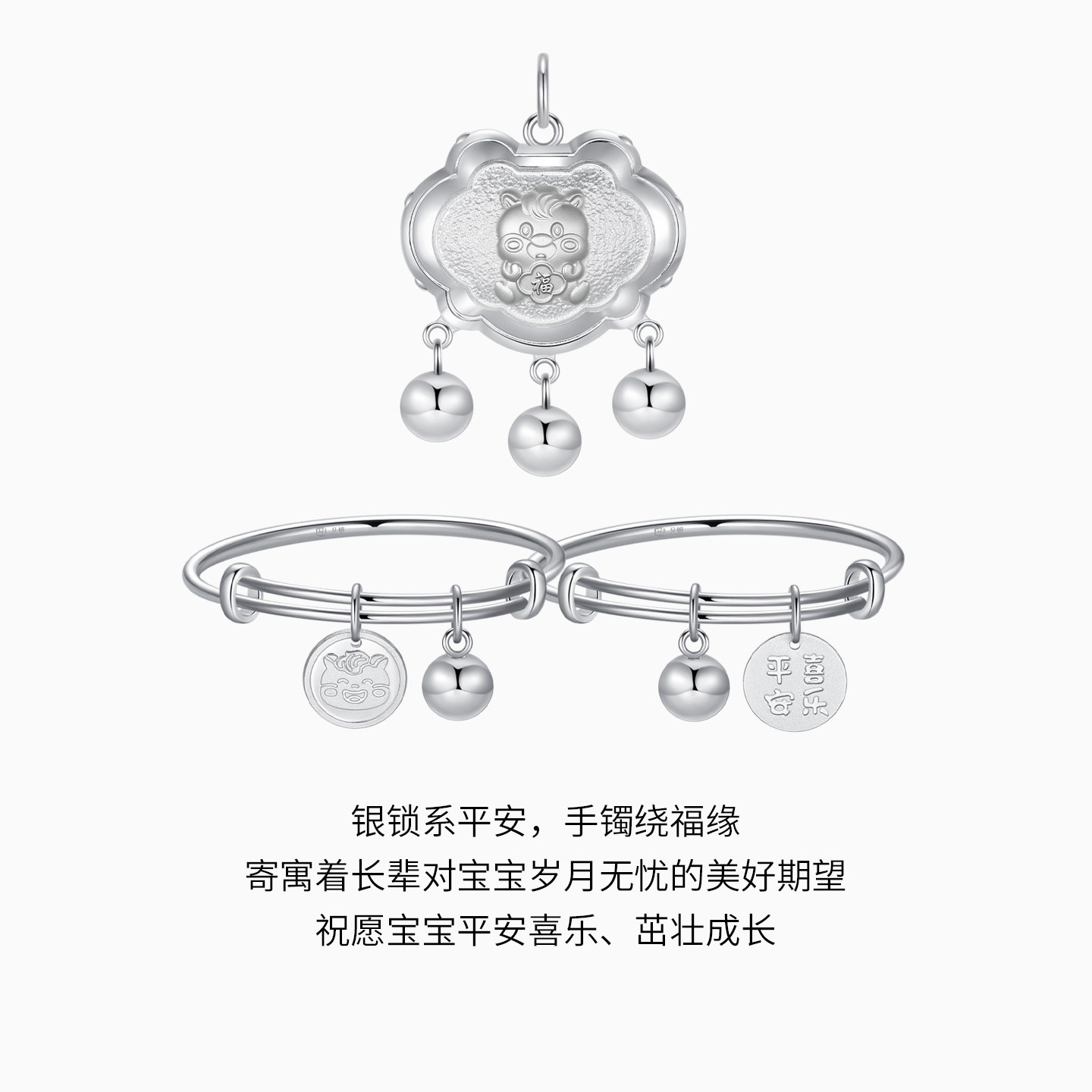 潮宏基生肖马足银吊坠童镯
