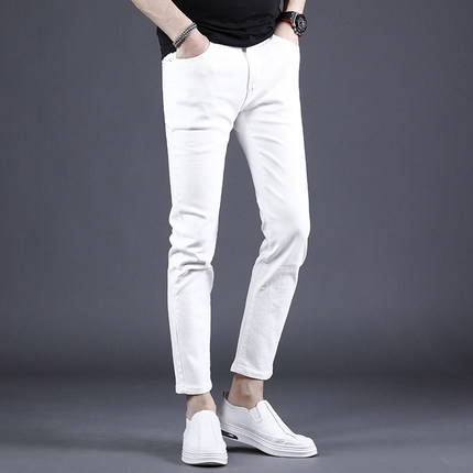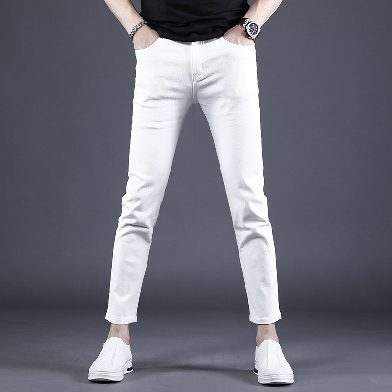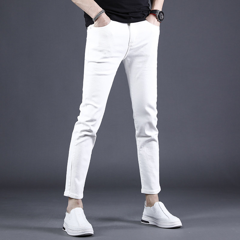 2024夏季新款白色九分牛仔裤男修身小脚薄款韩版潮流百搭9分裤男