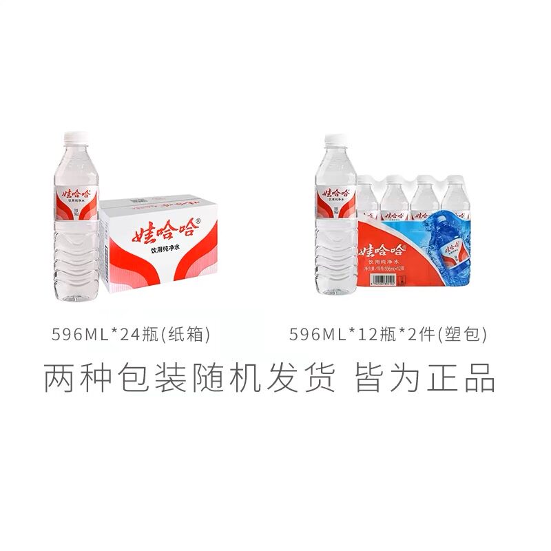 娃哈哈纯净水596ml*48瓶整箱开会出行饮用小瓶非矿泉哇[包装随机
