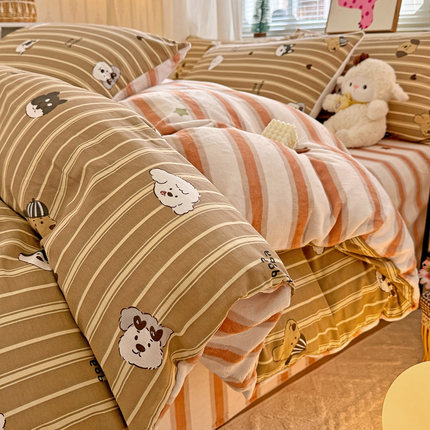 秋冬纯棉牛奶绒床上四件套双面全棉加绒被套A类儿童床笠单人床品