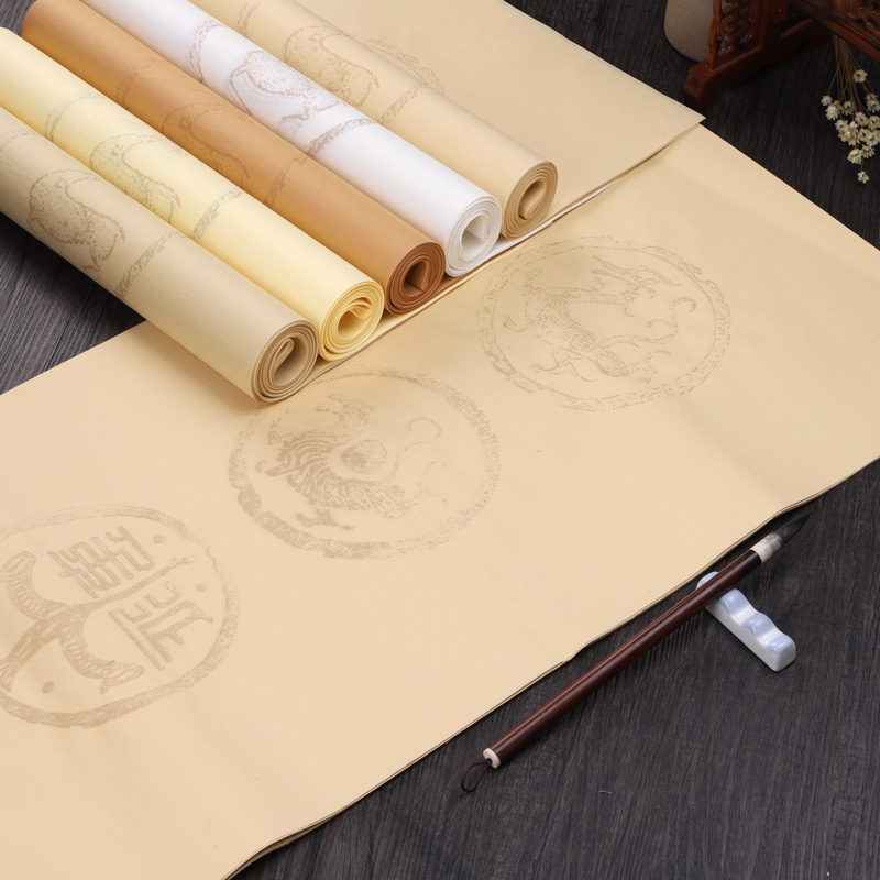 华夏国宣四尺对开四言五言七言瓦当宣纸洒金空白手写书法作品纸仿古生宣对联专用纸学生初学毛笔字练习纸批发
