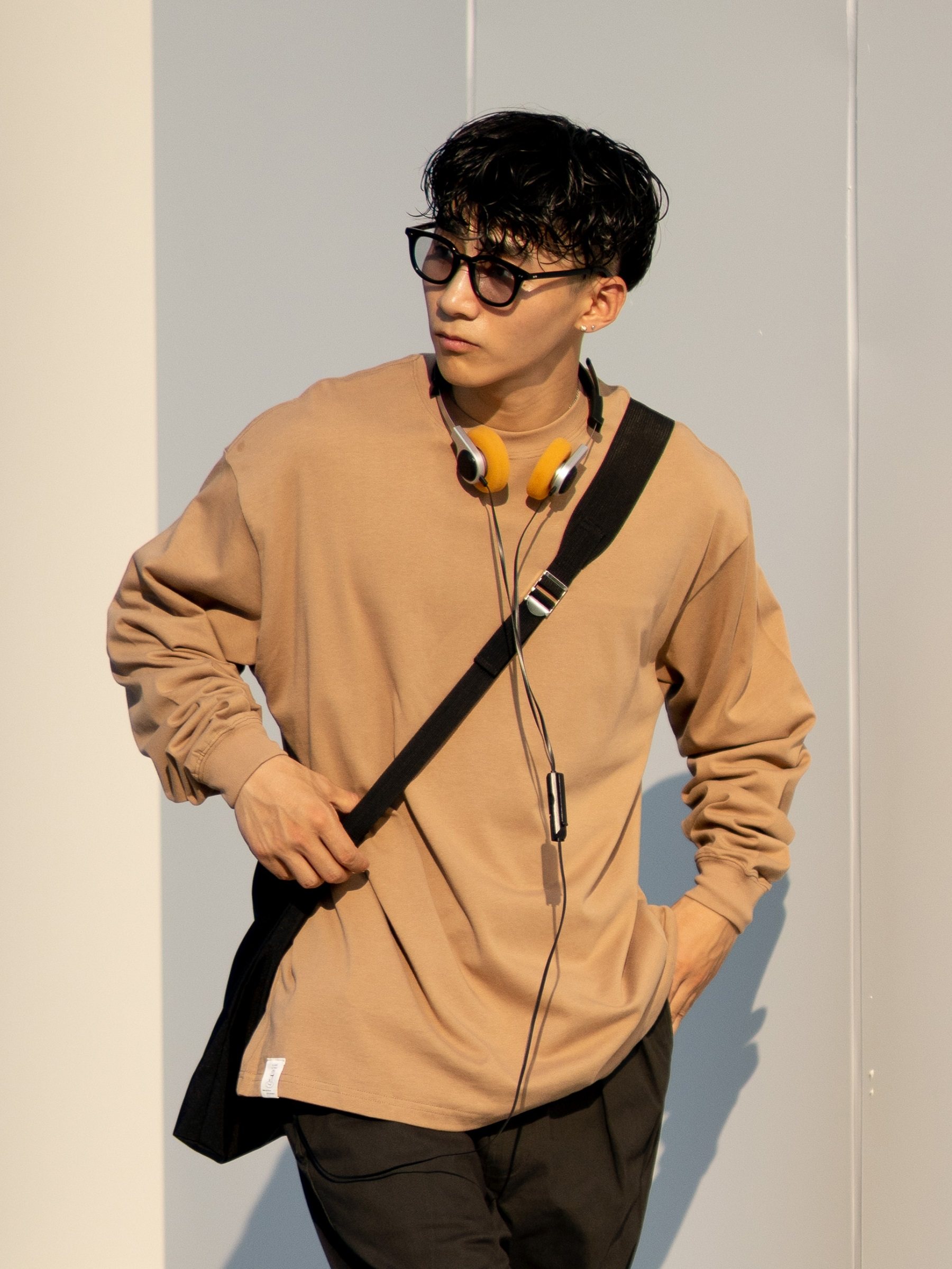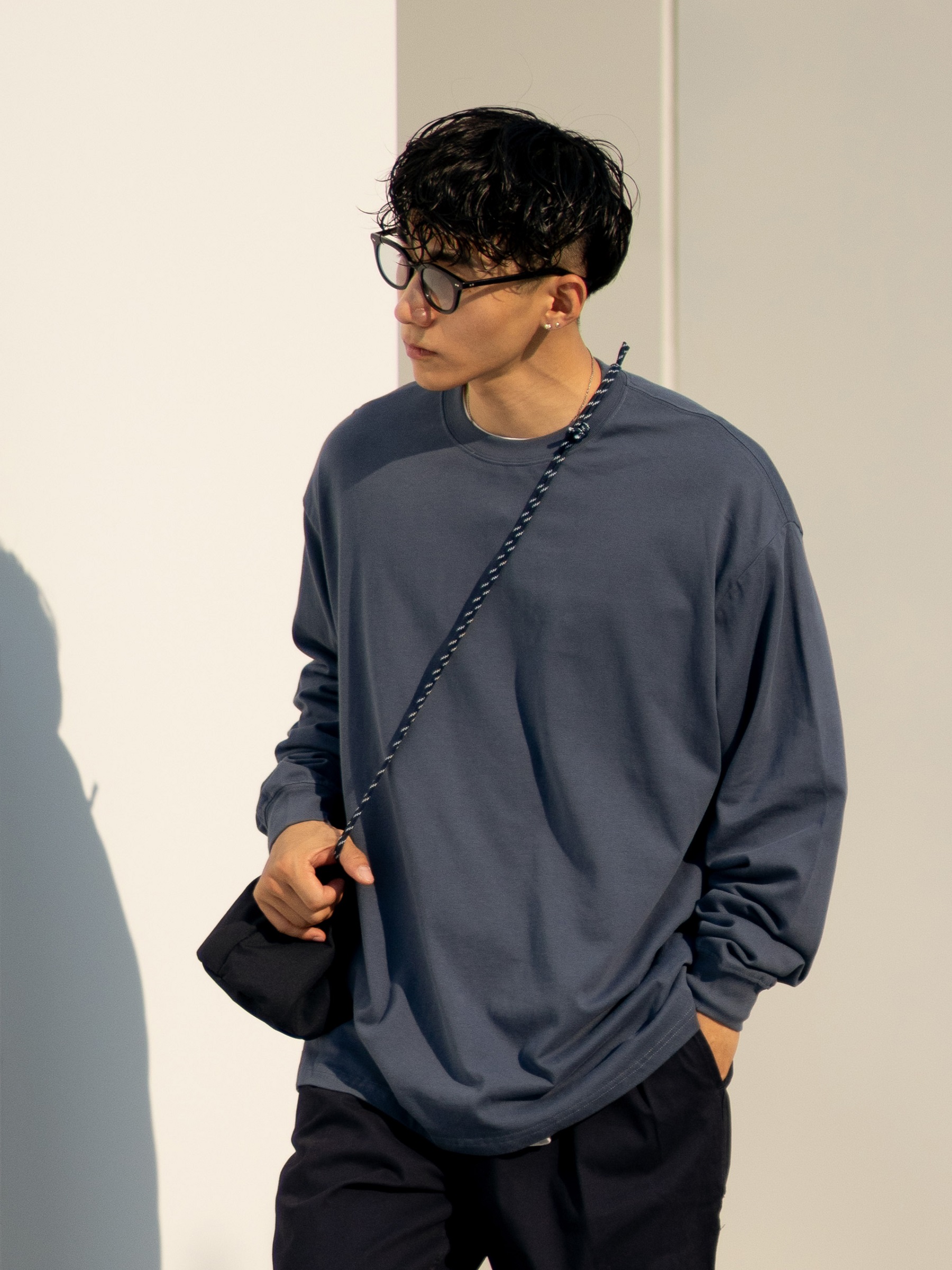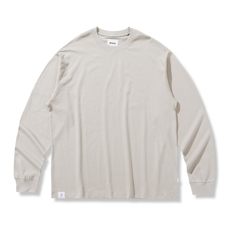 BCALM青春流行宽松休闲圆领基础纯色国潮白色长袖打底T恤男女重磅