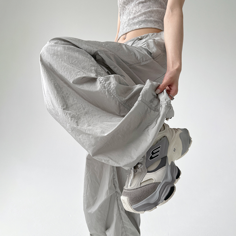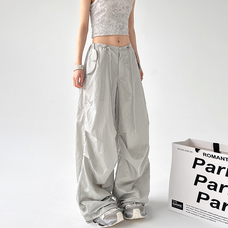 美式速干工装裤女夏季百搭2025款垂感高腰宽松直筒休闲阔腿裤子女