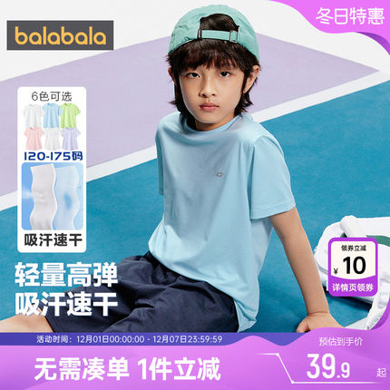 巴拉巴拉儿童运动速干t恤大童白色上衣夏装新款男童女童打底衫季