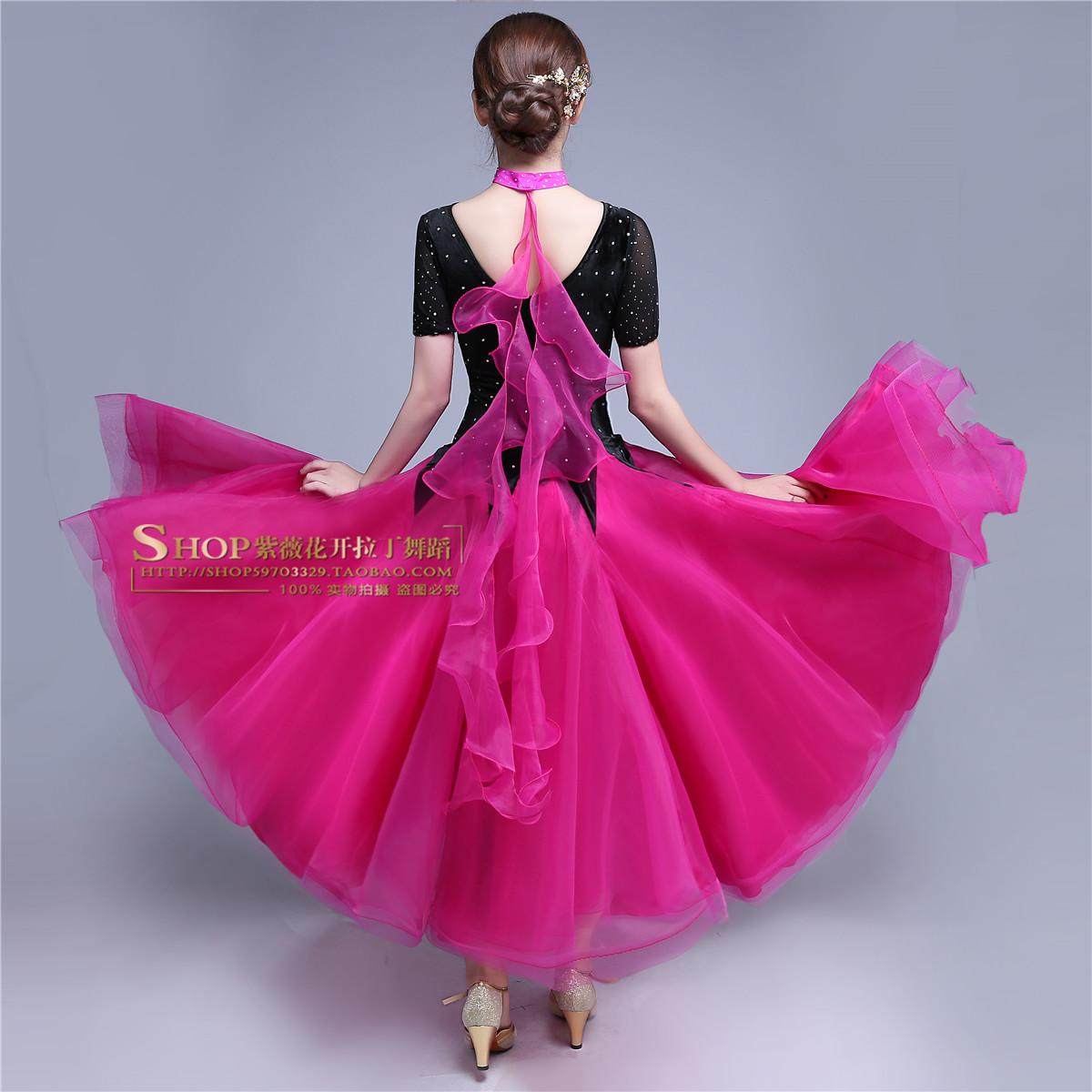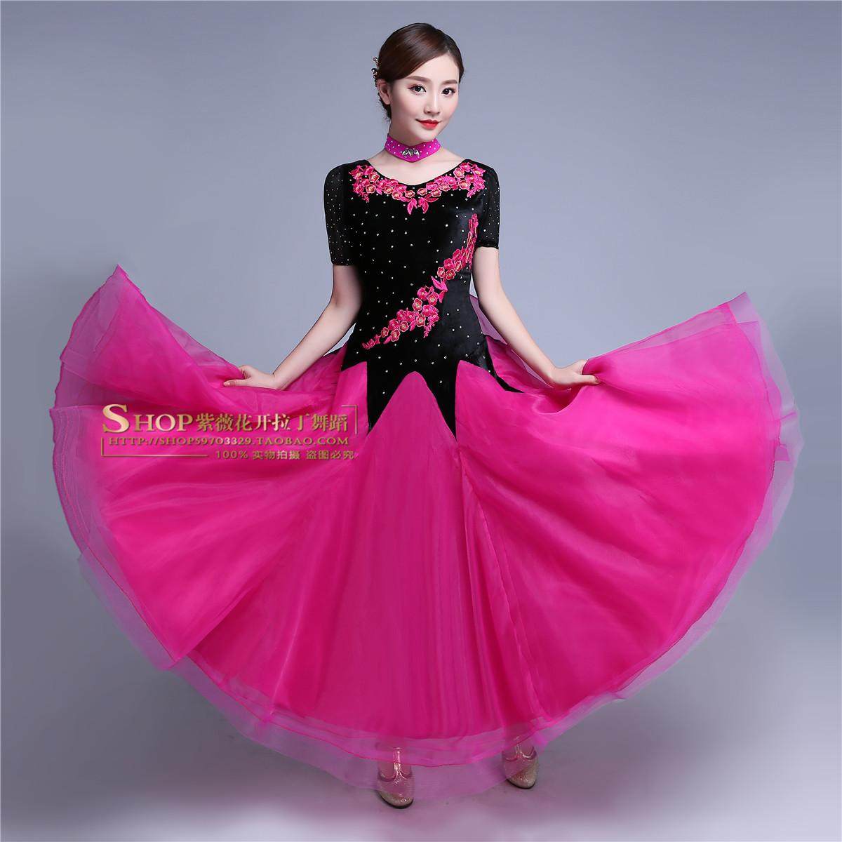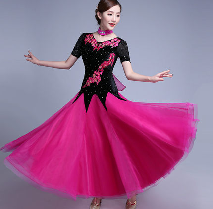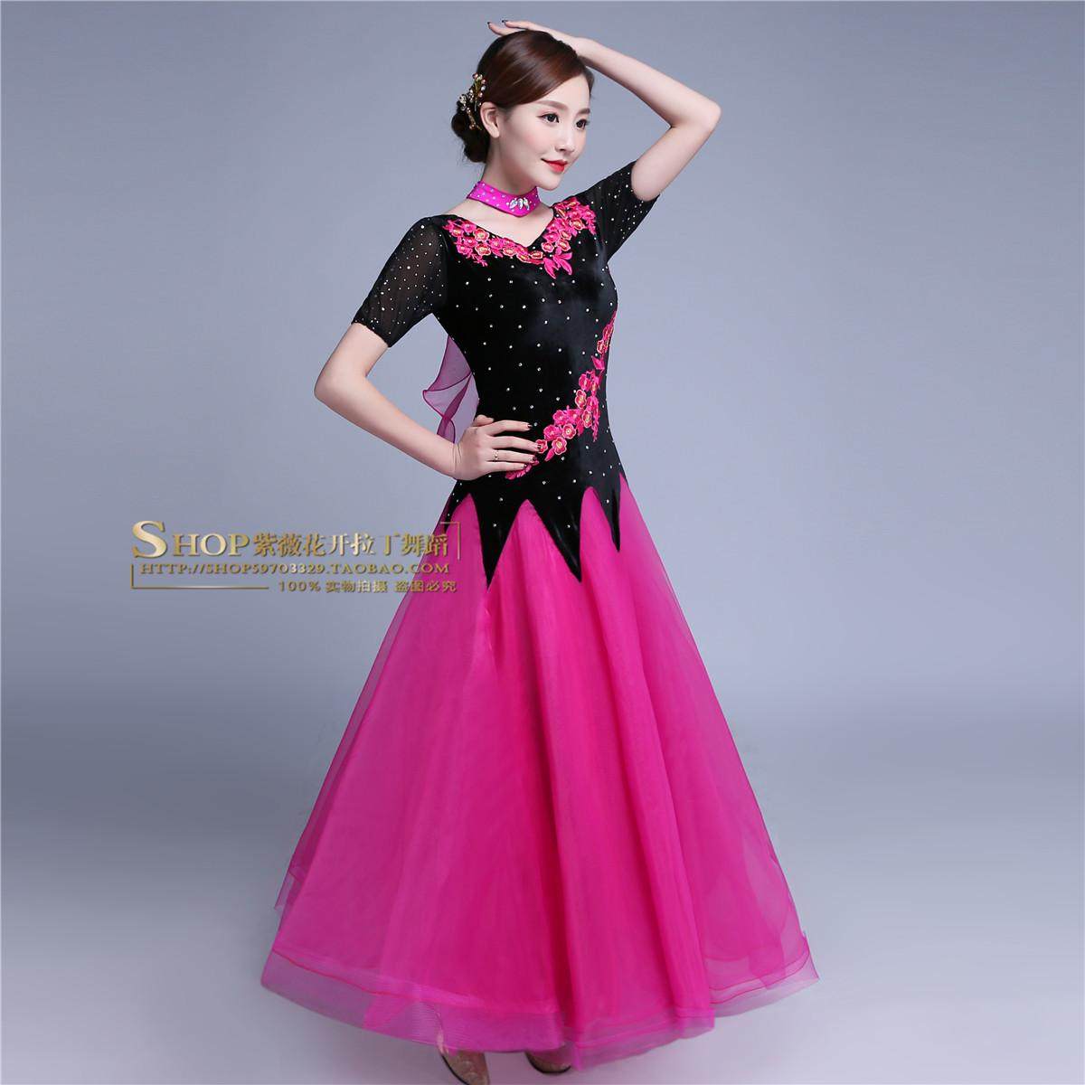摩登舞裙演出服国标舞裙比赛连衣裙新款交谊舞修身版型大裙摆短袖