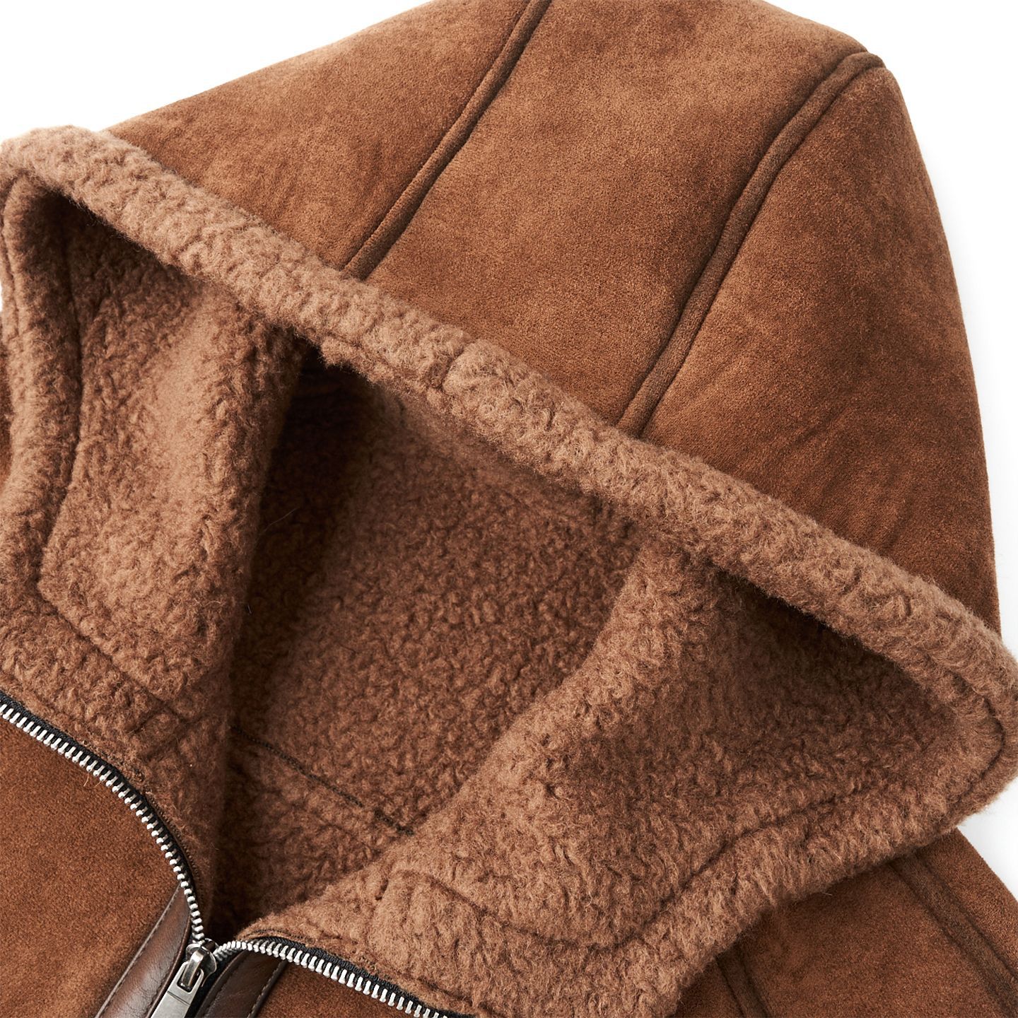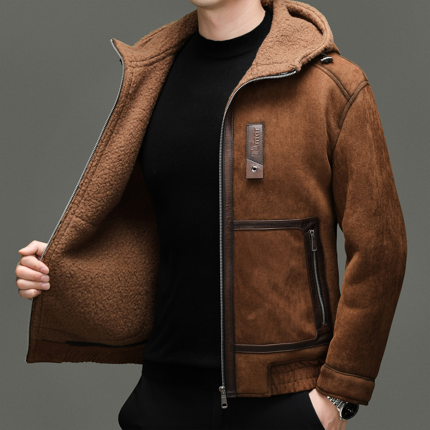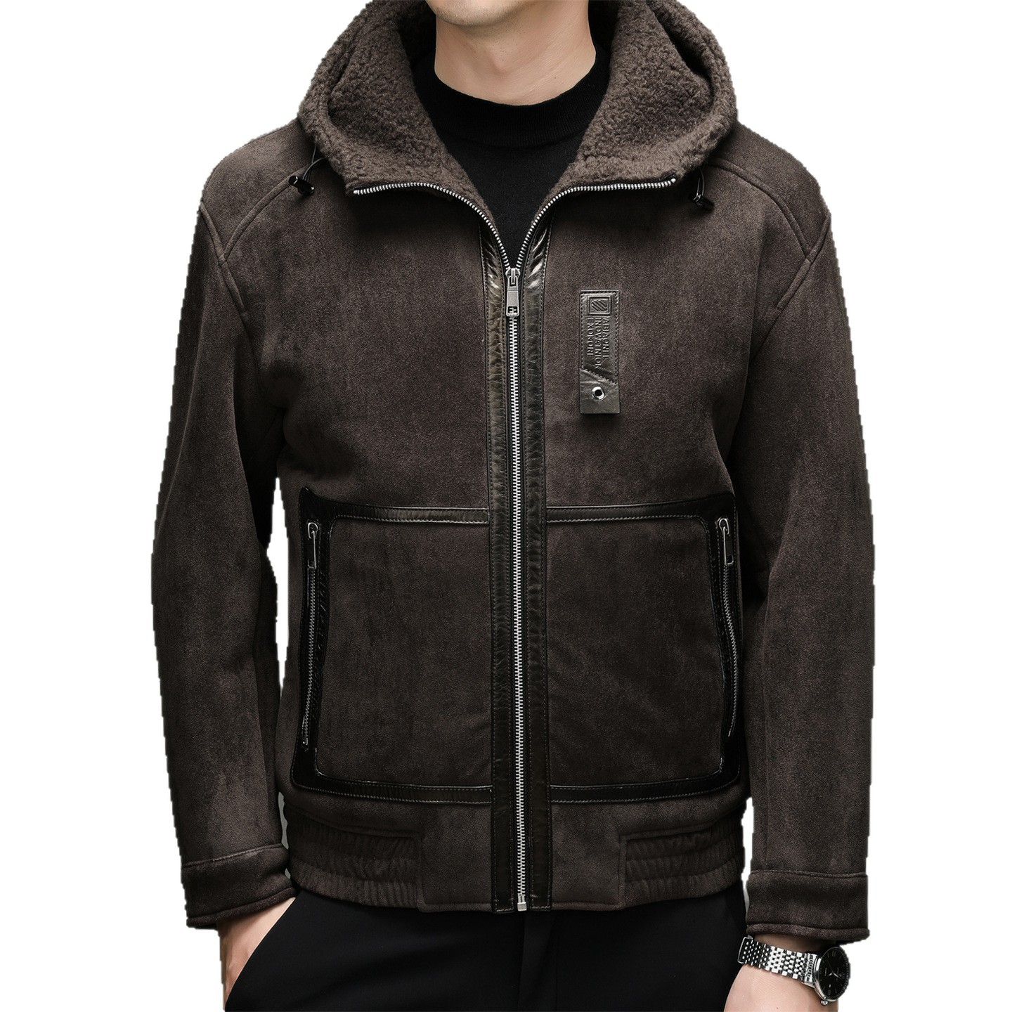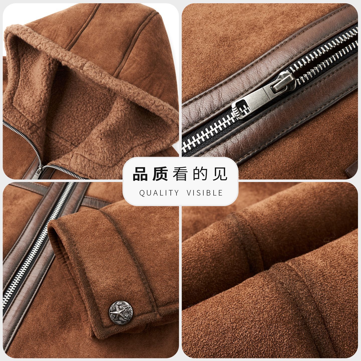 冬季男士加绒加厚真皮皮衣100%绵羊皮夹克内衬100%绵羊毛连帽外套