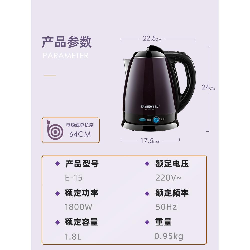 金灶E-15双层防烫电热水壶电热烧水壶煮水壶自动断电保温水壶家用