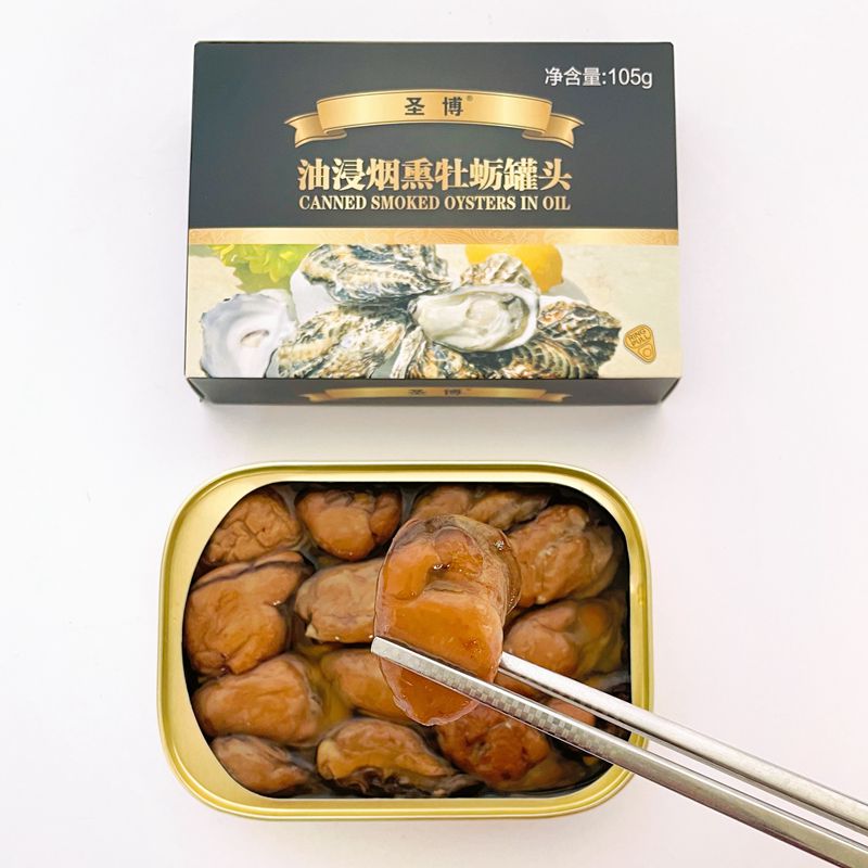 即食油浸烟熏牡蛎生蚝罐头出口新鲜海蛎子肉海鲜罐头105g*18盒
