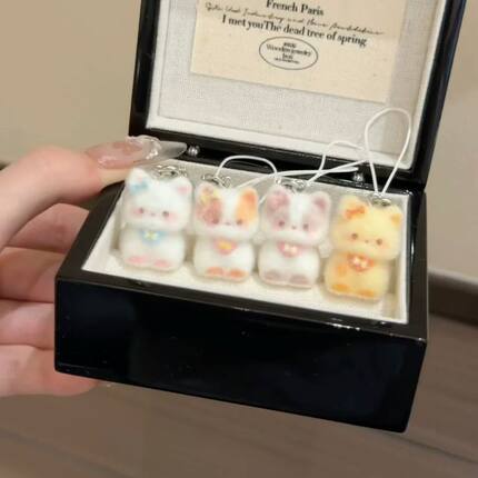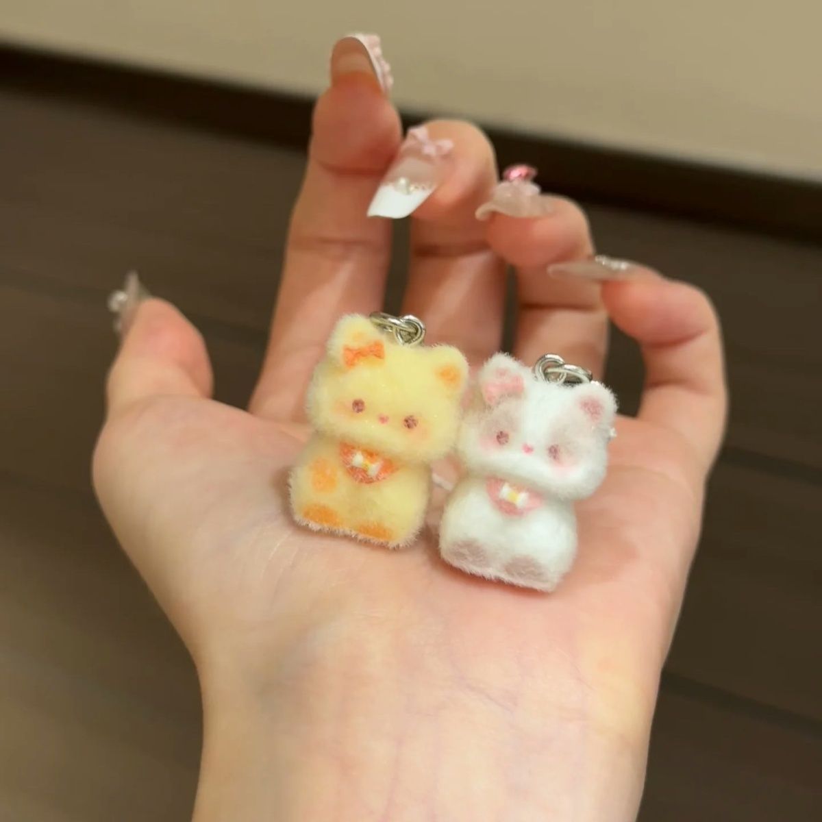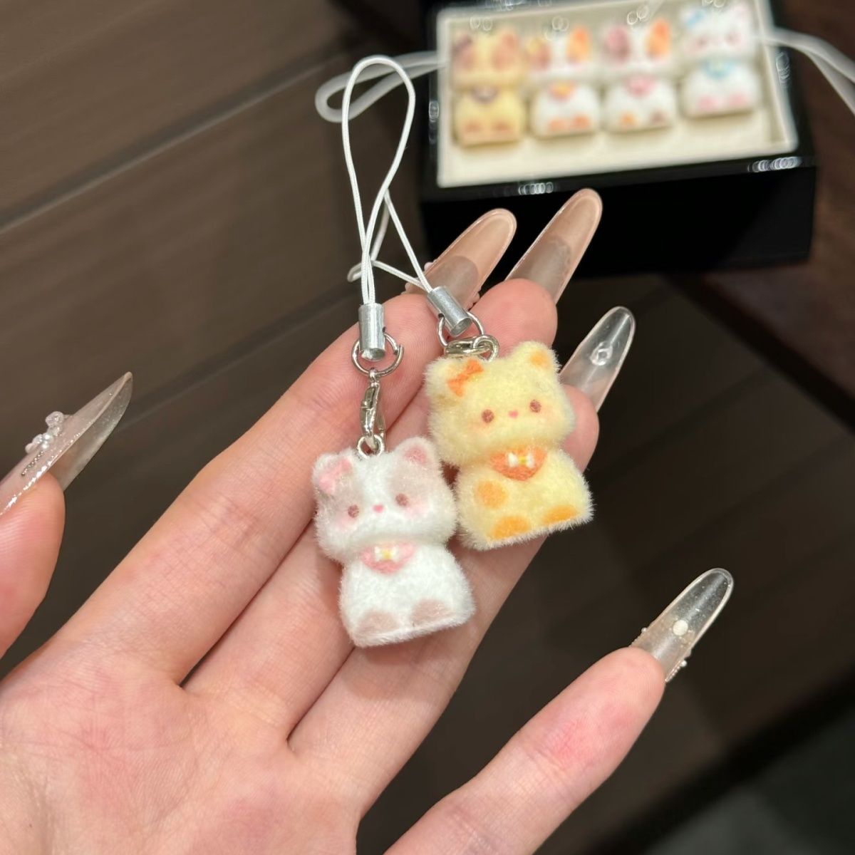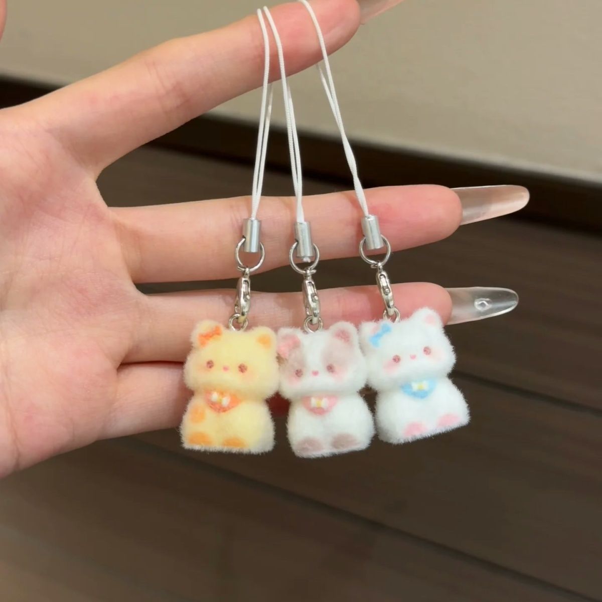 新款卡通可爱植绒立体树脂猫咪钥匙链包包挂件手机挂绳闺蜜礼物