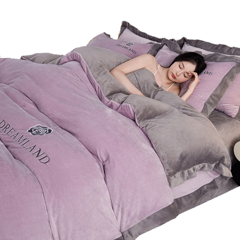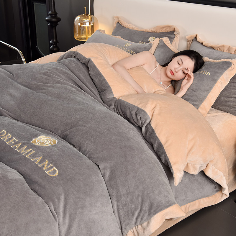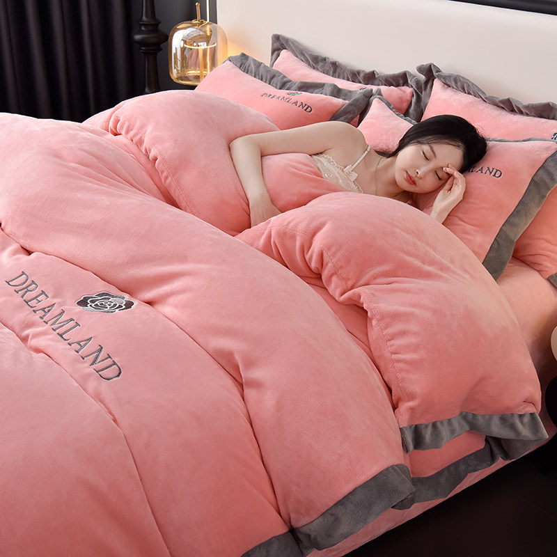 加厚双面绒牛奶绒四件套纯色