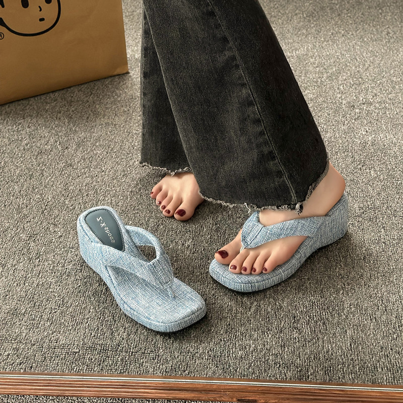 厚底夹脚人字拖女凉鞋2025夏季外穿松糕底坡跟时尚韩版高跟凉拖鞋
