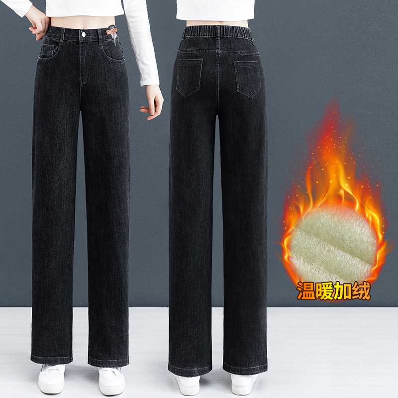 阔腿牛仔裤女2025新款女裤春秋冬加绒加厚高腰直筒裤窄版女士裤子
