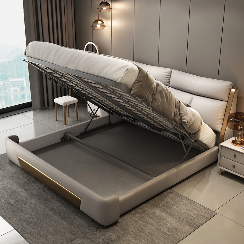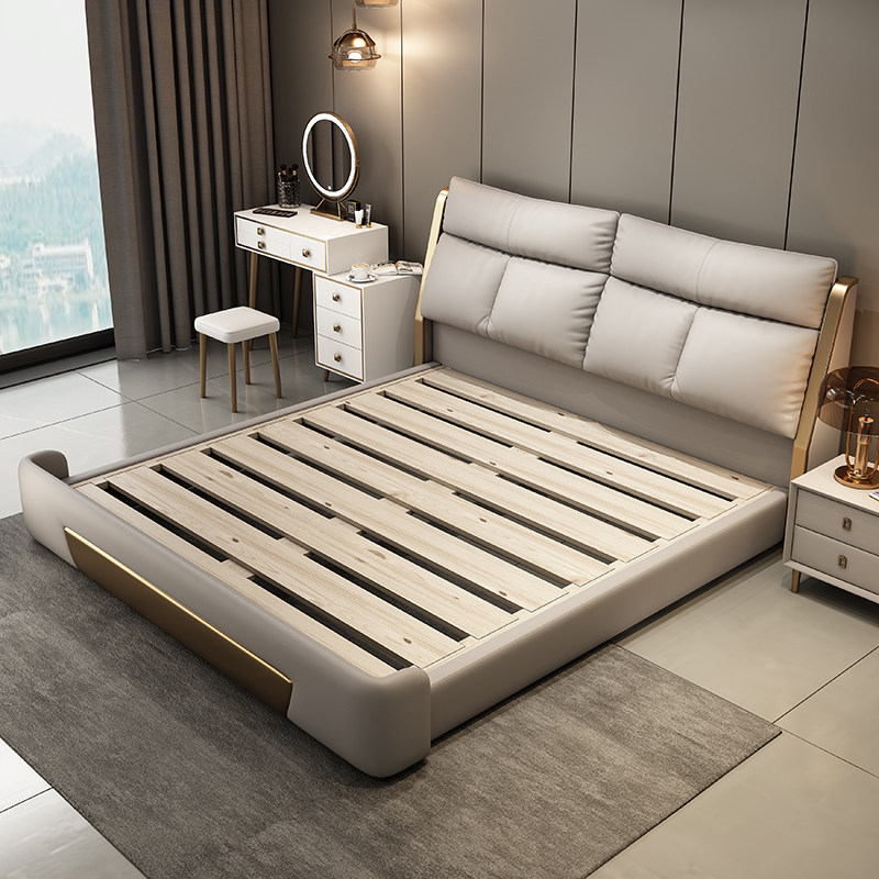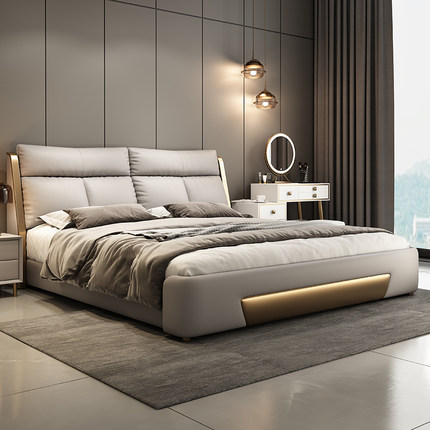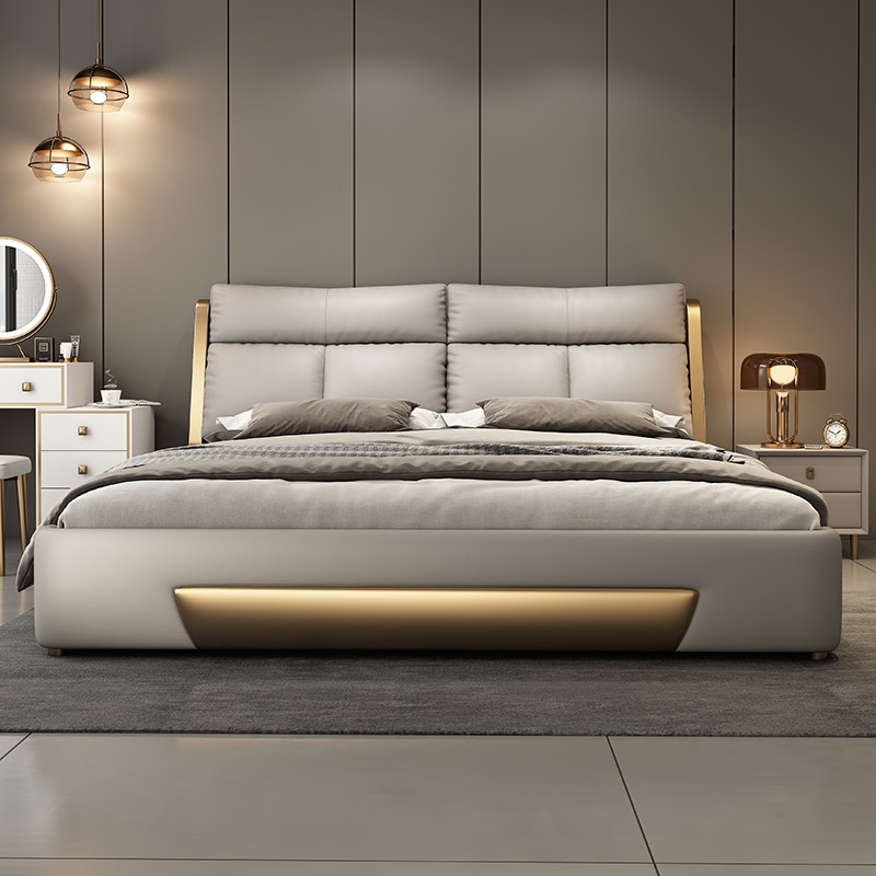 全友家居2025高端轻奢真皮床主卧双人床大床意式现代简约极简软包