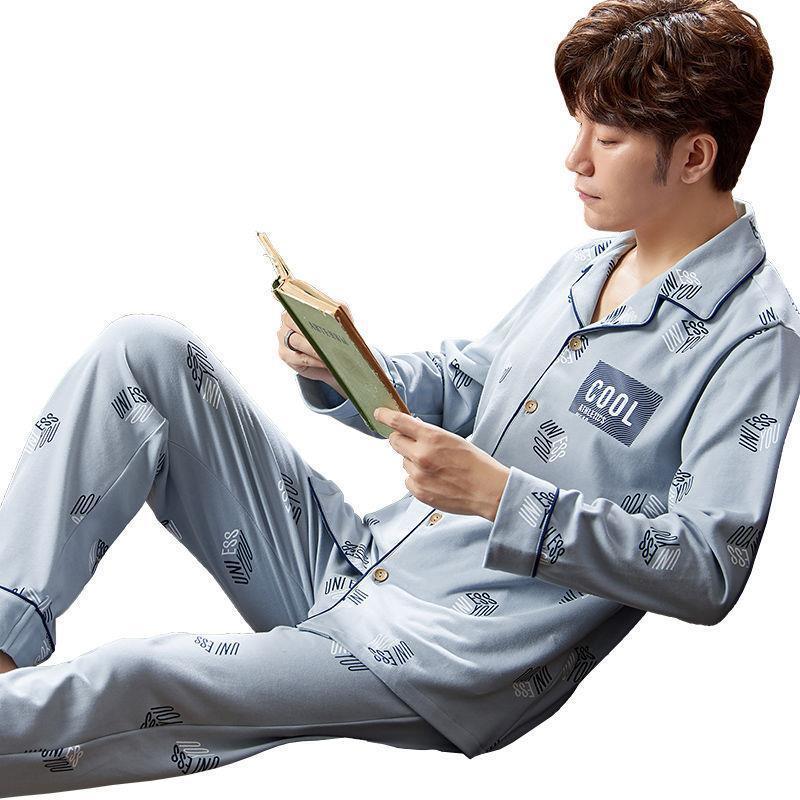 睡衣男长袖100%纯棉秋冬男士全棉薄款中年老人冬季休闲家居服套装