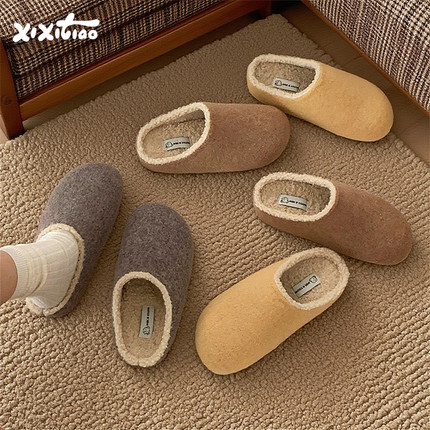 细细条 懒人一脚蹬女鞋百搭秋冬可爱加绒保暖土豆鞋勃肯棉拖鞋ins