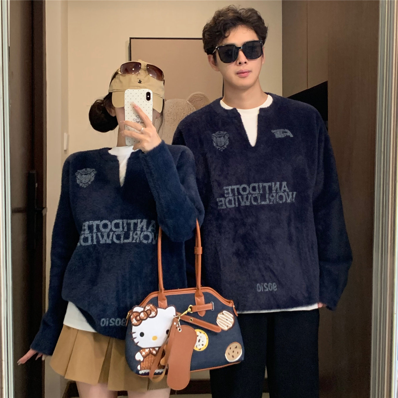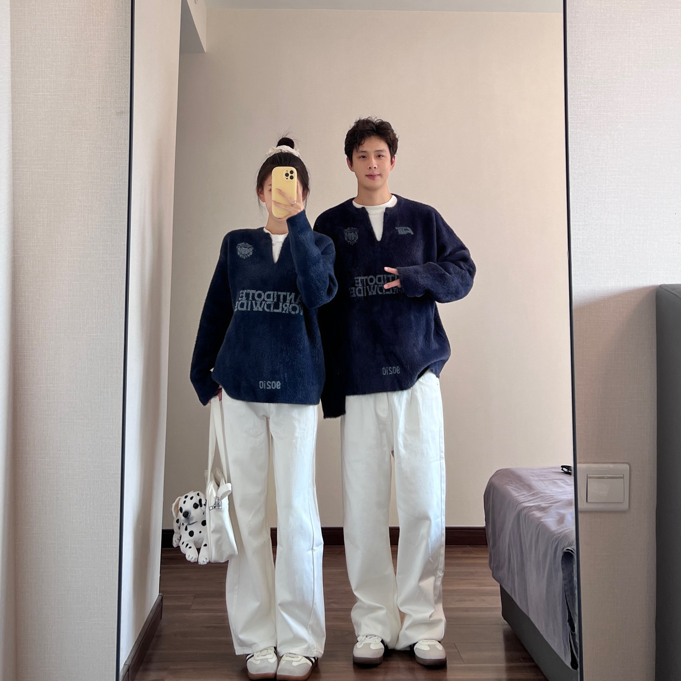美式秋冬2025新款运动徽章球服v领情侣装宽松毛衣针织衫长袖外套