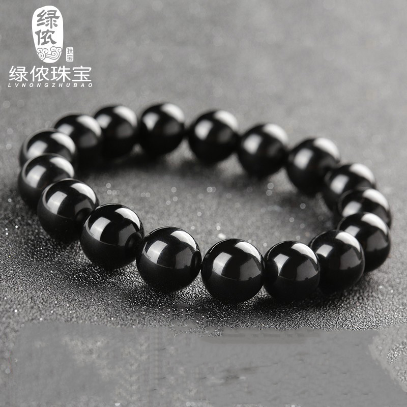 乌金黑曜石圆珠手串diy