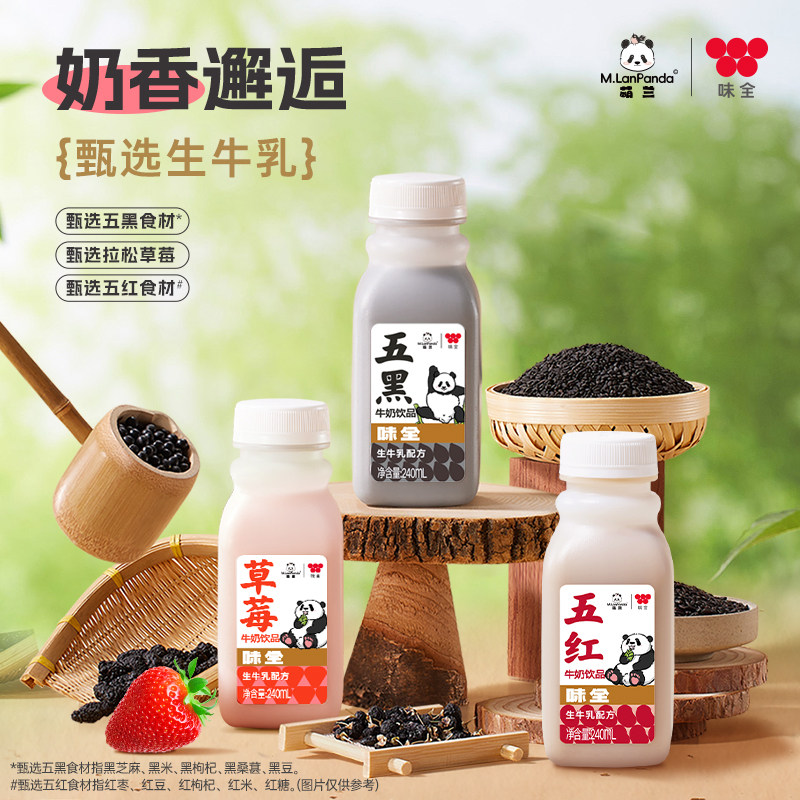 味全x萌兰联名五黑五红草莓牛奶饮品240ml*12瓶小瓶装生牛乳配方