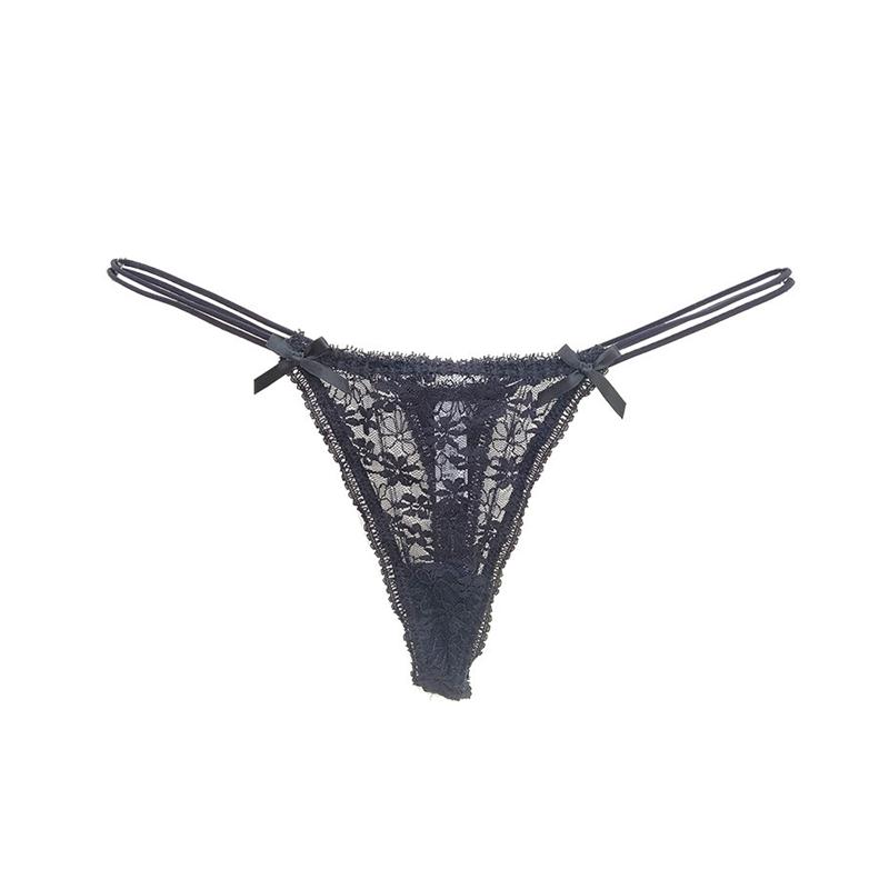 性感细带女生内裤透明蕾丝日系撞色镂空低腰无痕速干丁字裤女纯欲