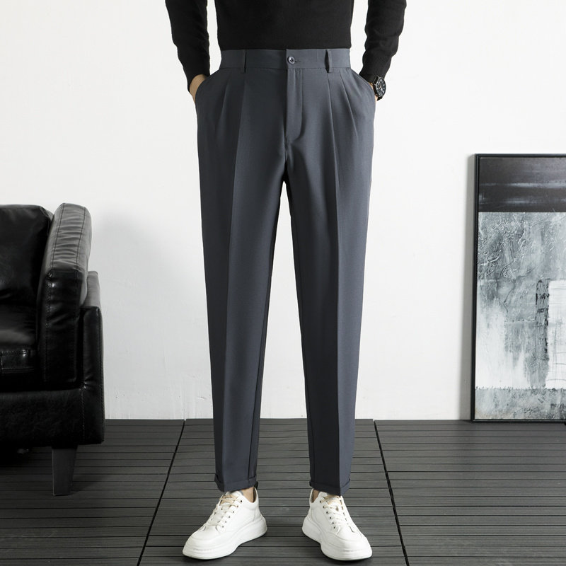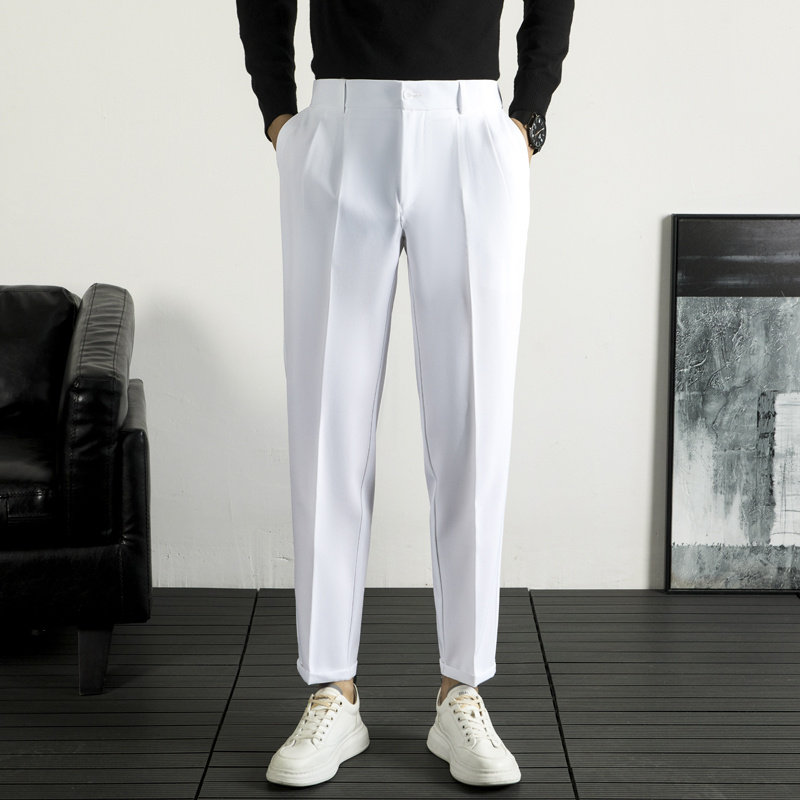 高级感九分西装裤子男士侧松紧腰潮流春秋男款商务休闲小西裤长裤