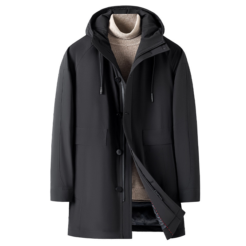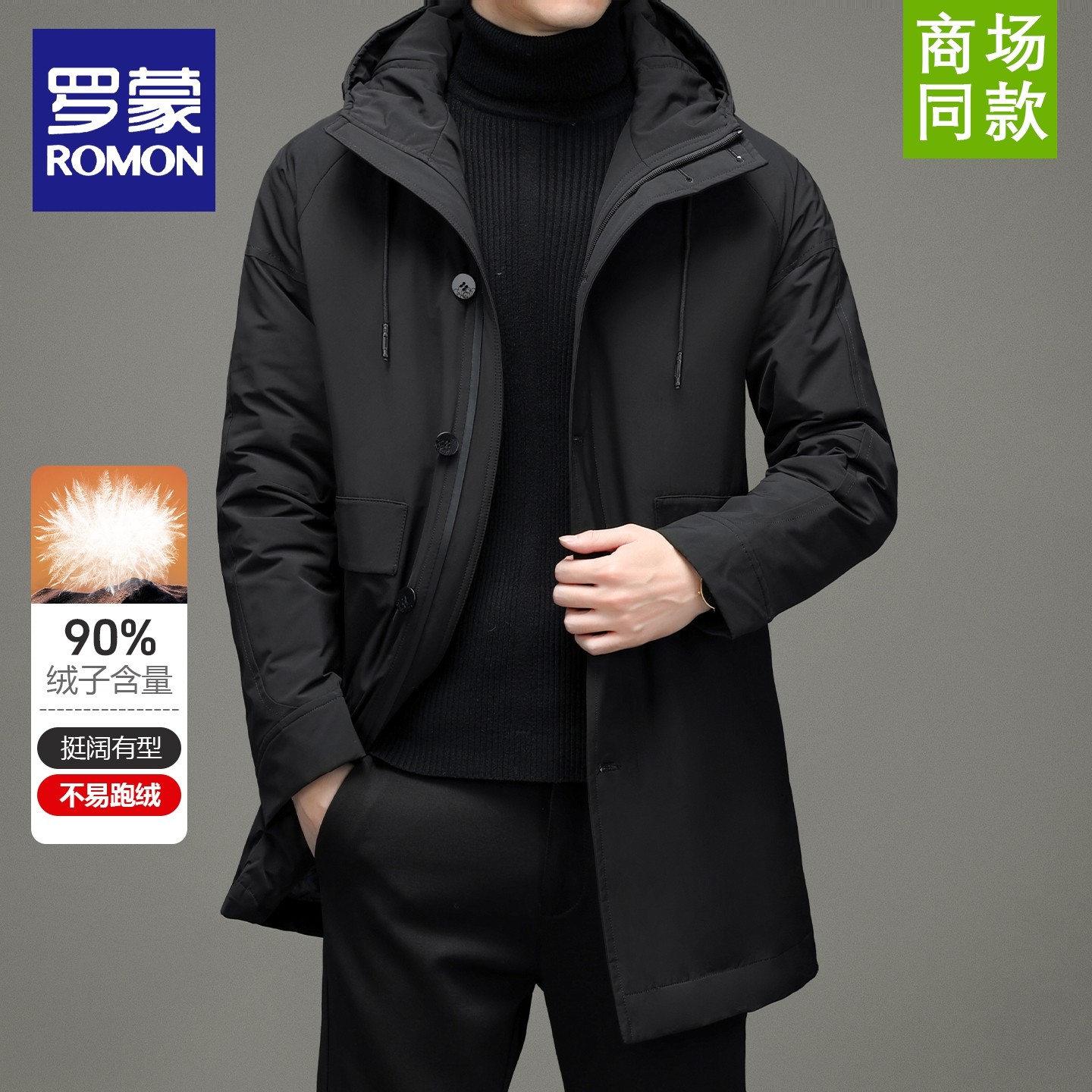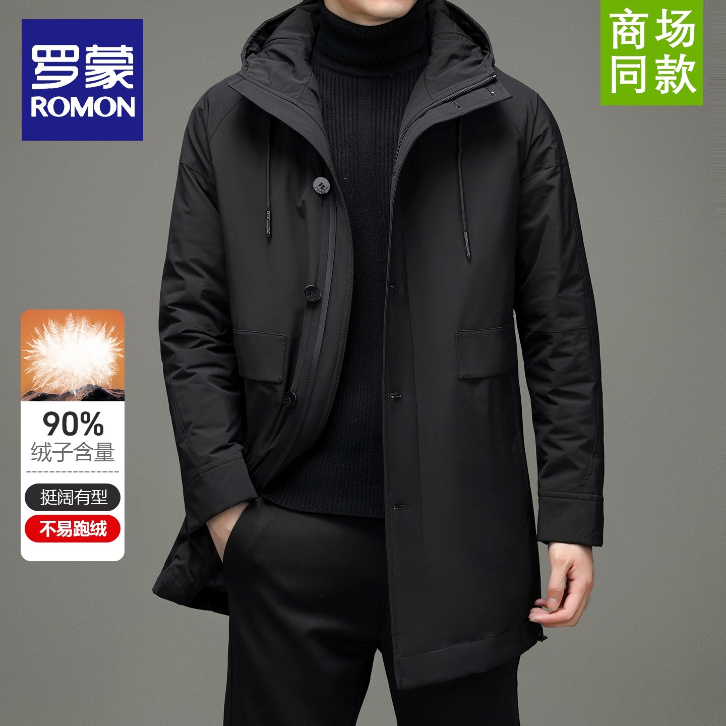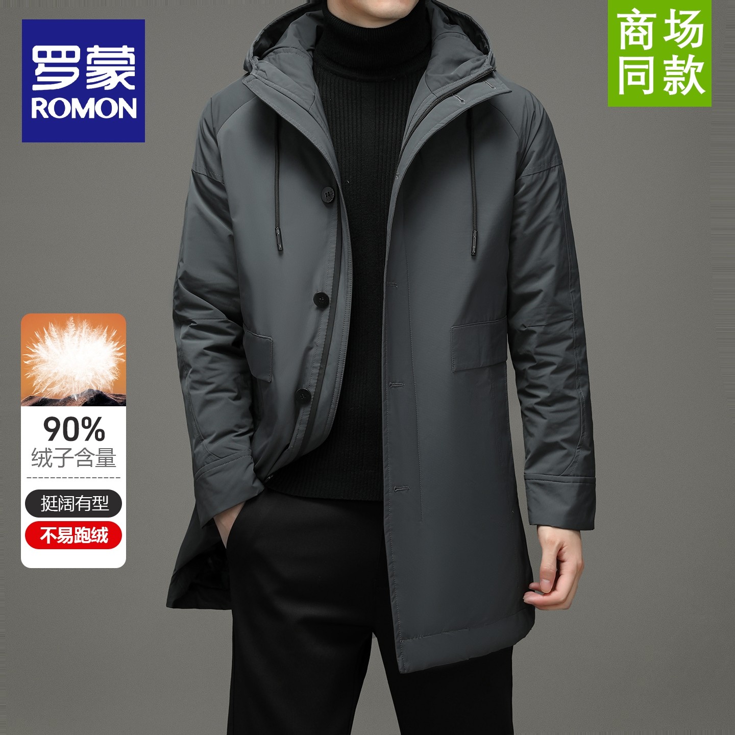 罗蒙90%白鸭绒男士冬季新款连帽中长款抗寒保暖风衣鸭绒防风外套