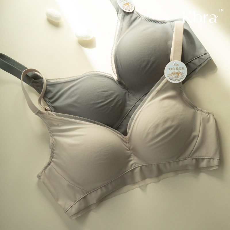 Kbra日本100%真丝桑蚕丝内衣女秋冬小胸聚拢防下垂收副乳透气文胸