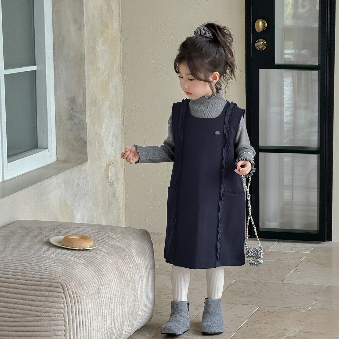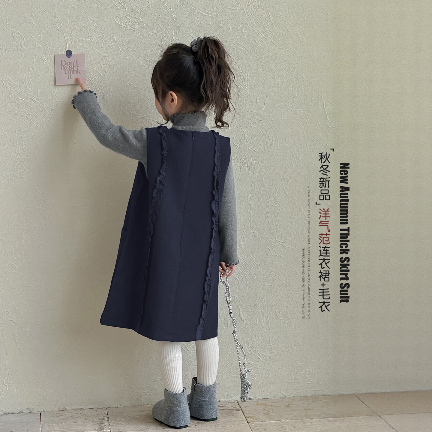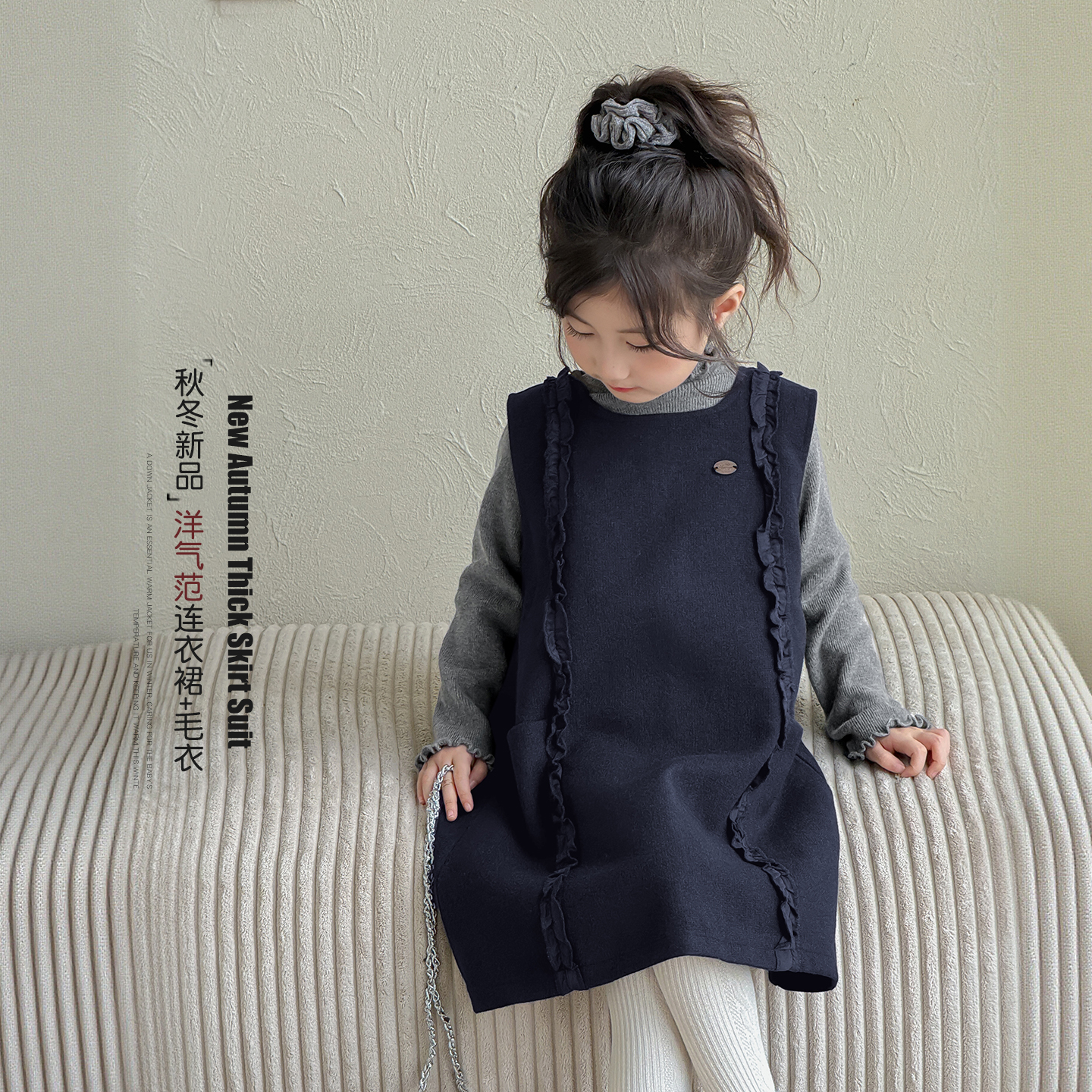 女童套装秋冬款2025新款儿童半高领针织毛衣女孩一体绒公主连衣裙